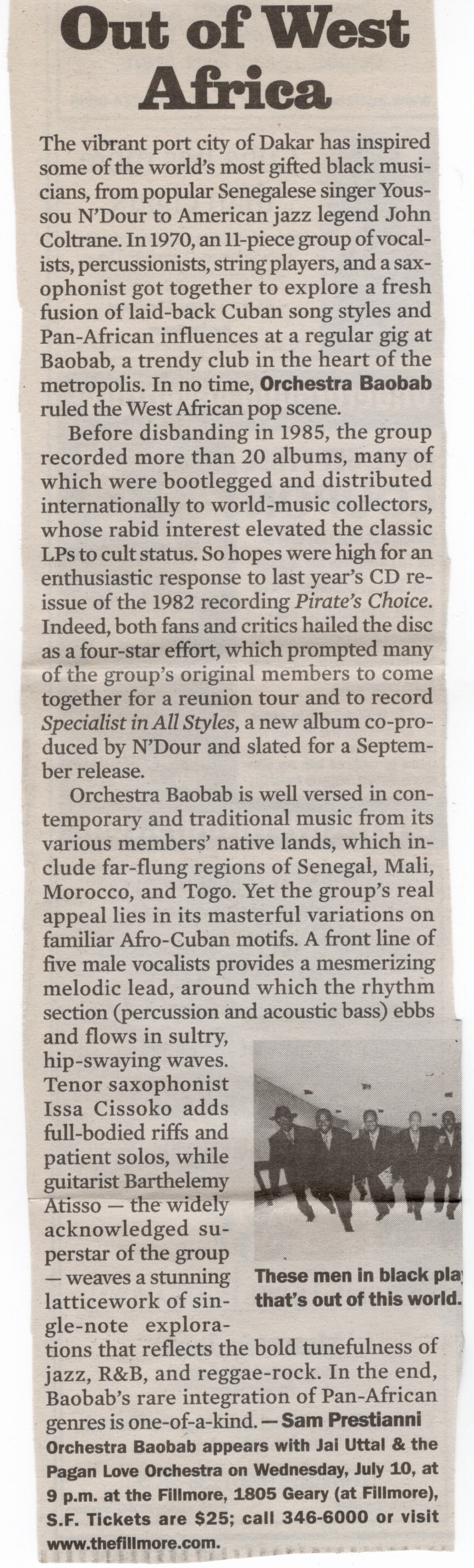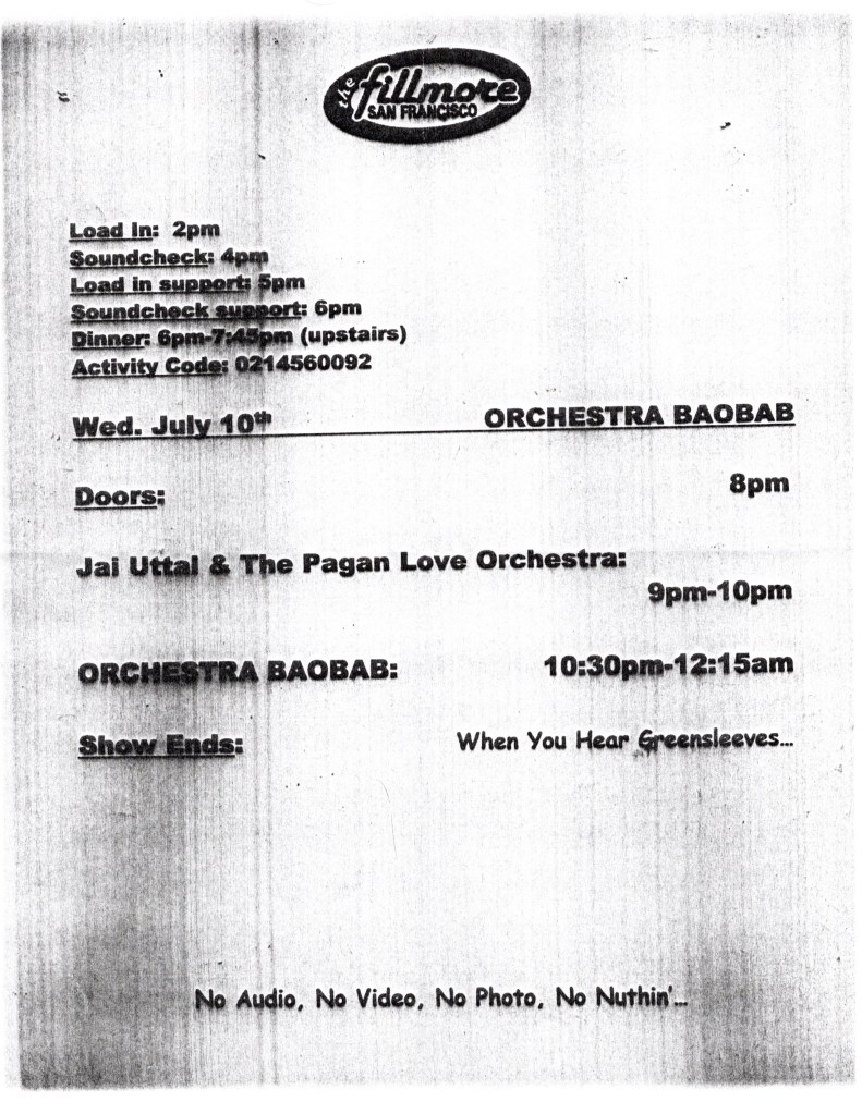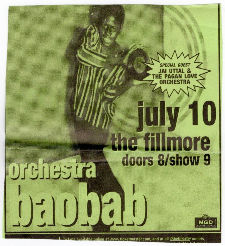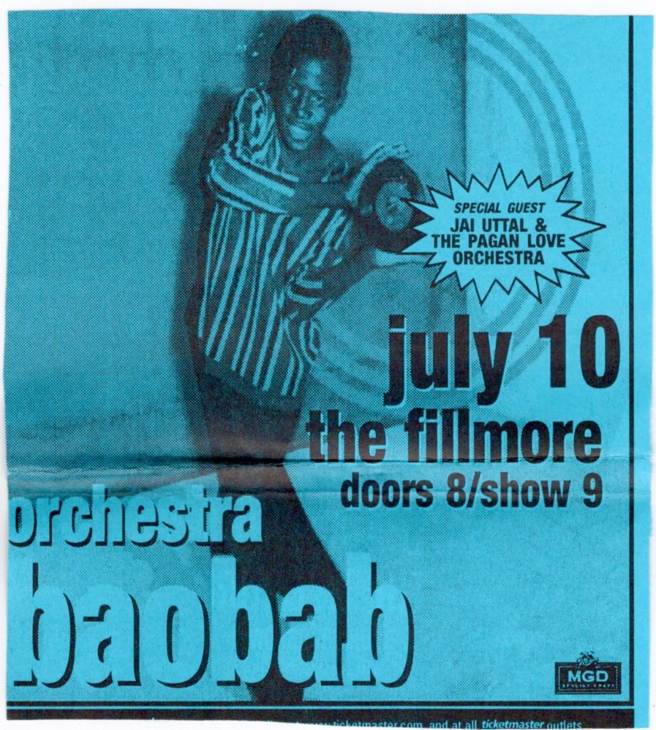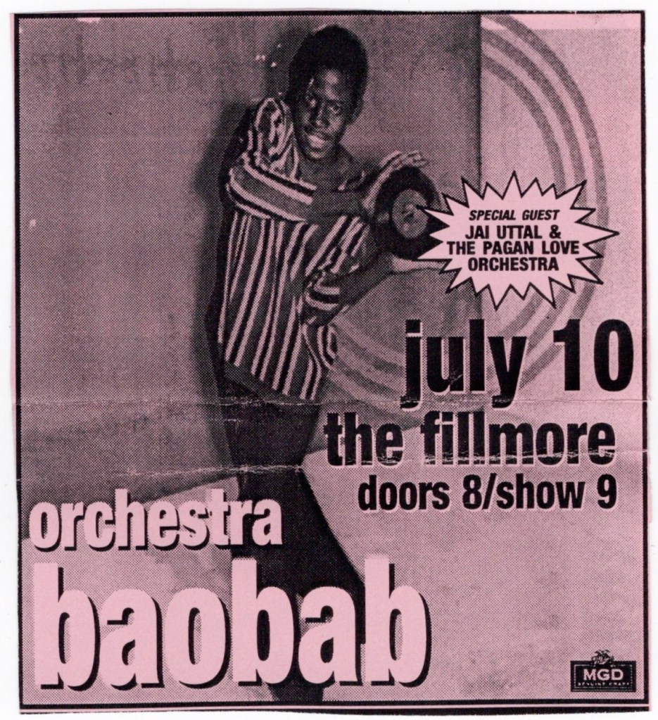 Orchestra Baobab, Dog Beaver, Jai Uttal & His Pagan Love Orchestra – Fillmore, SF, Wed., July 10