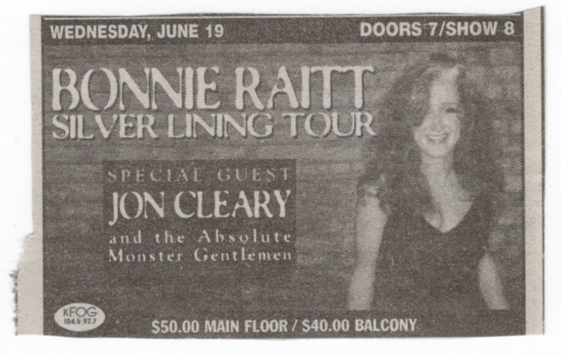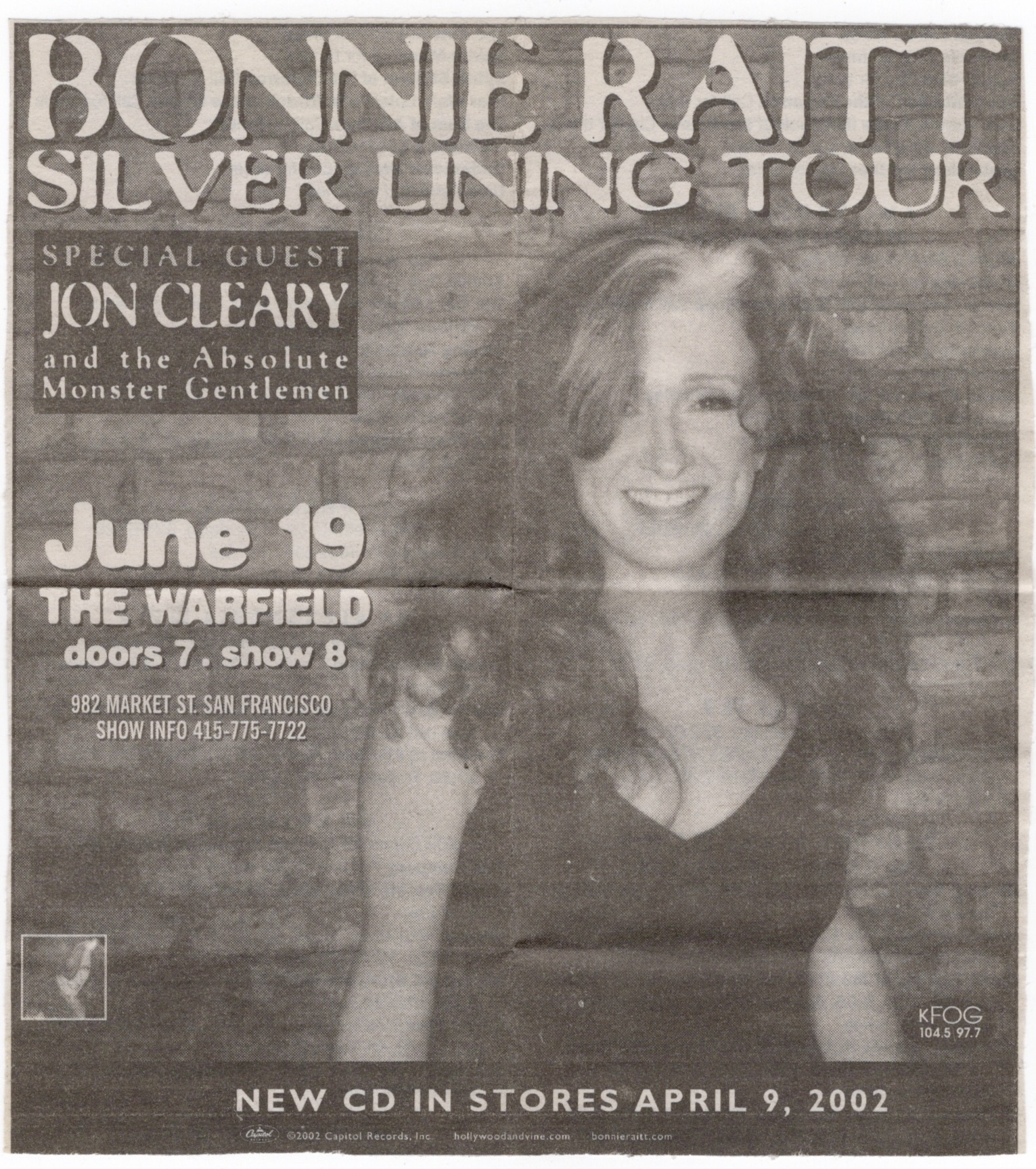Bonnie Raitt, Jon Cleary & The Absolute Monster Gentlemen – Warfield, SF, Wed., June 19