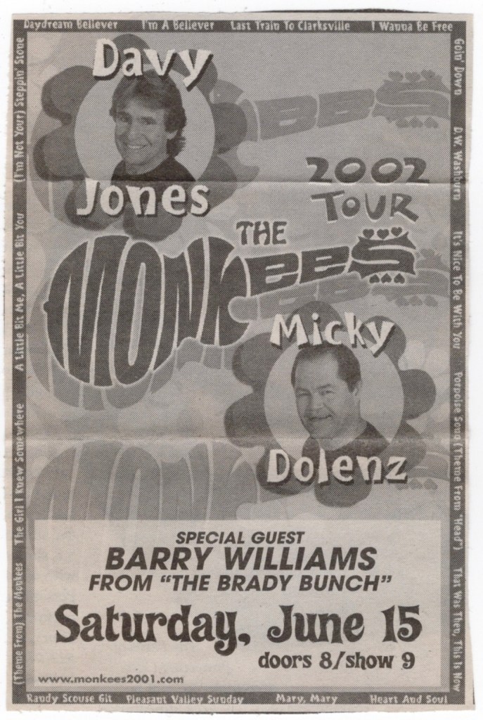 The Monkees, Barry Williams – Fillmore, SF, Sat., June 15