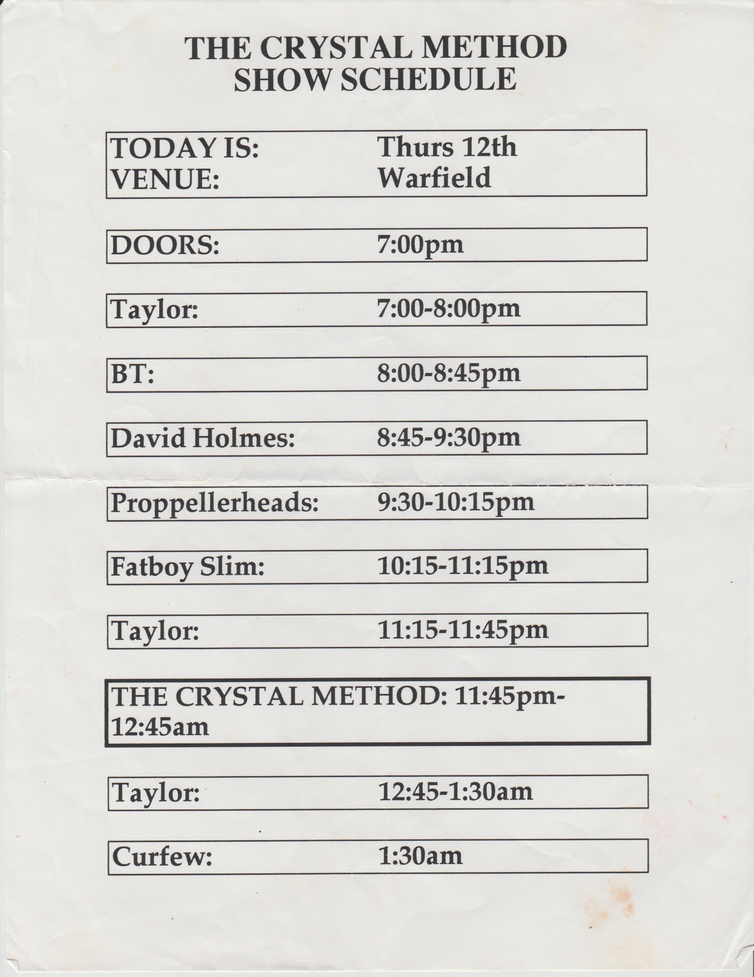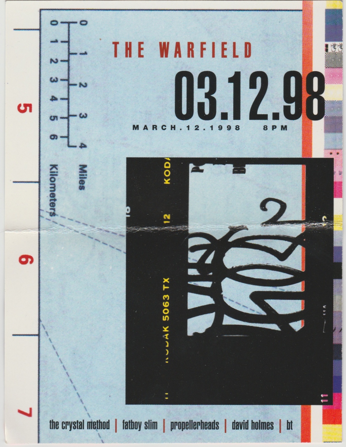 The Crystal Method, Flatboy Slim, David Holmes, Propellerheads, BT, War., SF, Thur., March 12, 1998