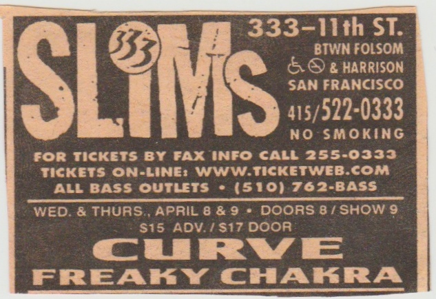 Opening that night after Baring Som was a new, young act from Vacaville called Papa Roach. They named their group after singer Jacoby Shaddix’s step-grandfather, Howard William Roach, and had just released their “5 Tracks Deep”EP. That would get the attention of major labels and they would be signed to Dreamworks a year later and get big with their smash hit song, “Last Resort”. But for this show, they were on early and there probably was about fifty people watching them by the time they finished. I liked them back then though. I rightly thought they had potential and were skilled musicians. Their persistence in touring would pay off in the end, though tragically Jacoby’s step grandad would die by his own hand in 2006 after receiving a terminal cancer diagnosis.