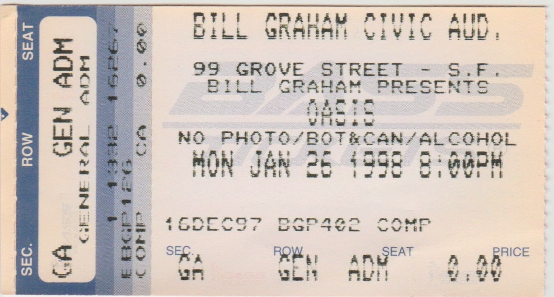 Oasis, Cornershop, BG Civic, SF, Mon., January 26, 1998