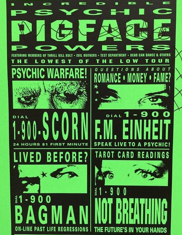 Opening that night would be I Am Spoonbender, another so-called experimental act. They were local guys, fronted by Dustin Donaldson, the drummer of queer punk pioneers, Pansy Division. This project of his would be quite a radical departure from his old band, involving tons of samples and multimedia stuff. Their name is a reference to celebrity psychic Uri Geller who would travel the world performing acts of telepathy and telekinesis including the old spoon bending trick. They were an unusual opening act to be sure, making one contemplate what music is in general. We’d be subjected to seemingly random samples of things like babies crying, electric drill noise, and what sounded like creaking door hinges. Experiencing their set was frankly a little jarring, but I assume that was their intention.