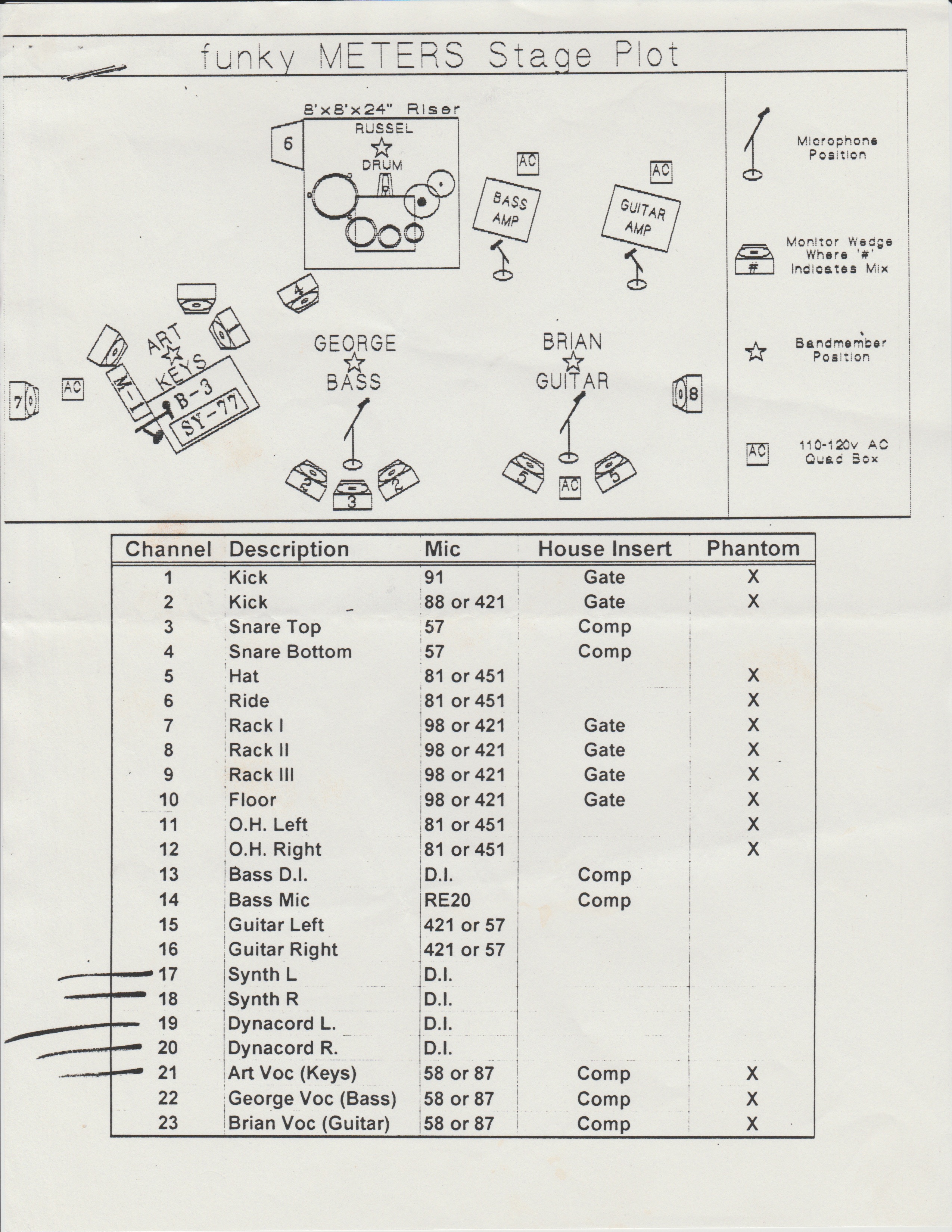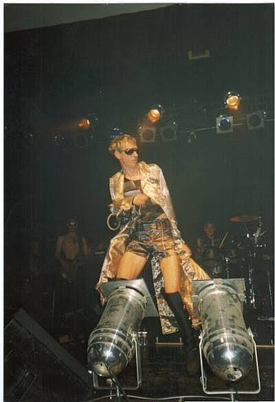 They did three encores that night after ending their set with “Eloise”. For the first encore, Captain came out wearing only his black underwear, what the British refer to as “Y-fronts”, though we like to call them tidy whities. Doing another costume change for the second encore, he came out wearing a light pink summer dress and a blond, bobbed woman’s wig. It was quite a sight watching Captain roll around on the ground during the slow beginning of “Smash It Up” and french kissing a couple young ladies in the front. Dave and the band were looking at him almost impatiently for him to finish making out before they went into the faster second half of that song. One of those girls stole Captain’s wig briefly, trying it on for herself. I’ll never forget after the song ended, Pete was convinced the show was over and turned off the ADAT machines, though I told him to wait. To his defense, the band was off stage a little longer than the usual encore break, but they did come back and we managed to scramble, getting the tapes back in the machines and starting them before the last song began. They finished the night with an epic version of “Ignite” that went on over ten minutes.