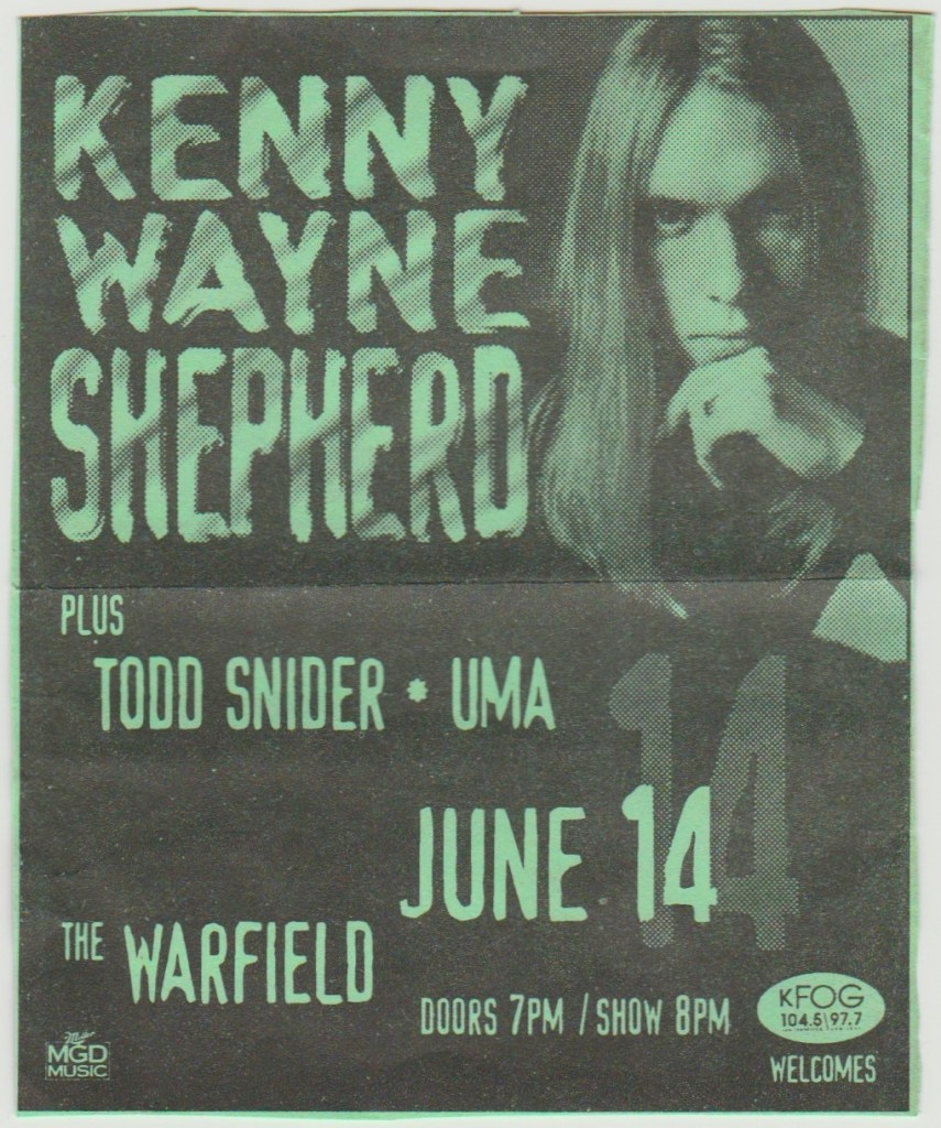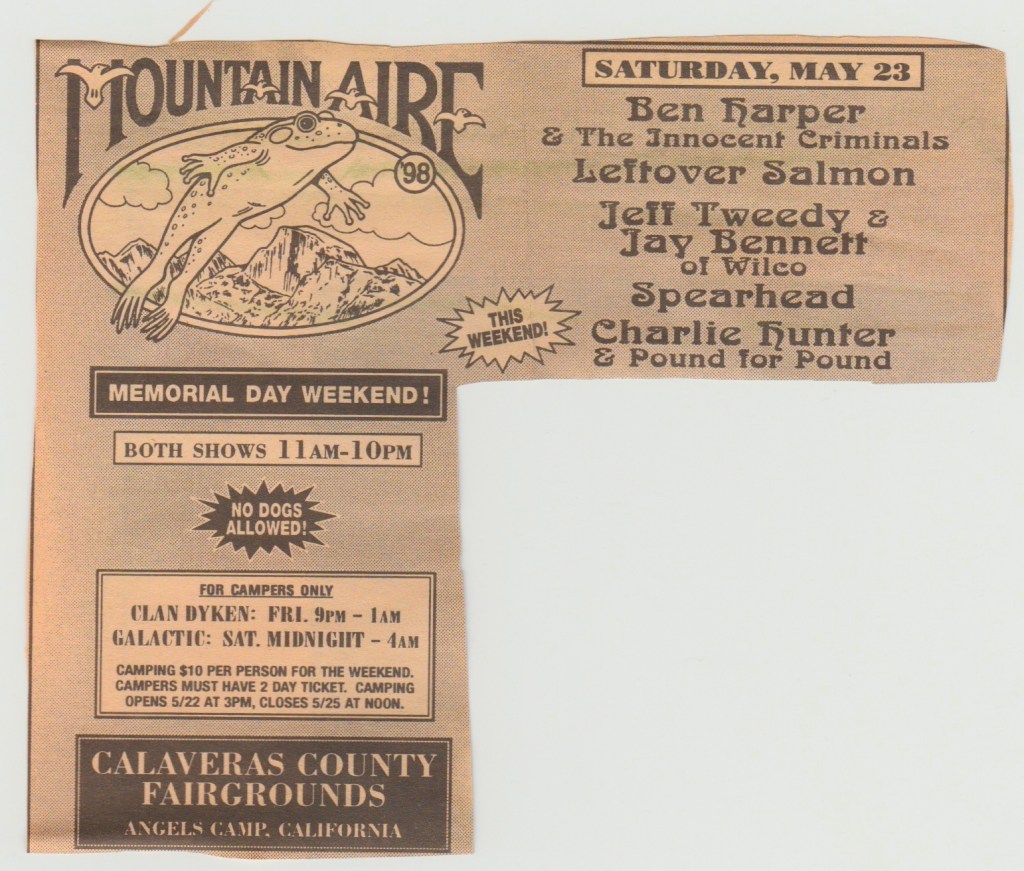 Billy was touring with Ian McLagan from the Small Faces on keyboards which must have been a treat for Billy since the his band was a big influence on him. As luck would have it, I accidentally stumbled into a pub in north London when I was studying overseas in 1992 and there was Ian with his band playing a free set, so this would be the second time I’d see Ian perform live. Billy would go on to play one of Woody’s songs, “Way Over Yonder In The Minor Key”, on Letterman ten days later accompanied by Natalie Merchant, who sang the song with him on the album. Opening that show was a blues and reggae musician from Denver named Corey Harris. He had performed on both of the “Mermaid Avenue” albums, playing guitar, lap steel guitar, backing vocals, and handclaps on the first, and acoustic guitar on the second. I recall it was just him on stage solo that night and the crowd listened to him politely. Billy did mention later something about fireworks going off over on Treasure Island during Corey’s set, but I didn’t see them, nor knew what the occasion was for them.