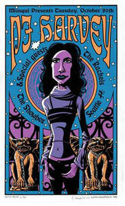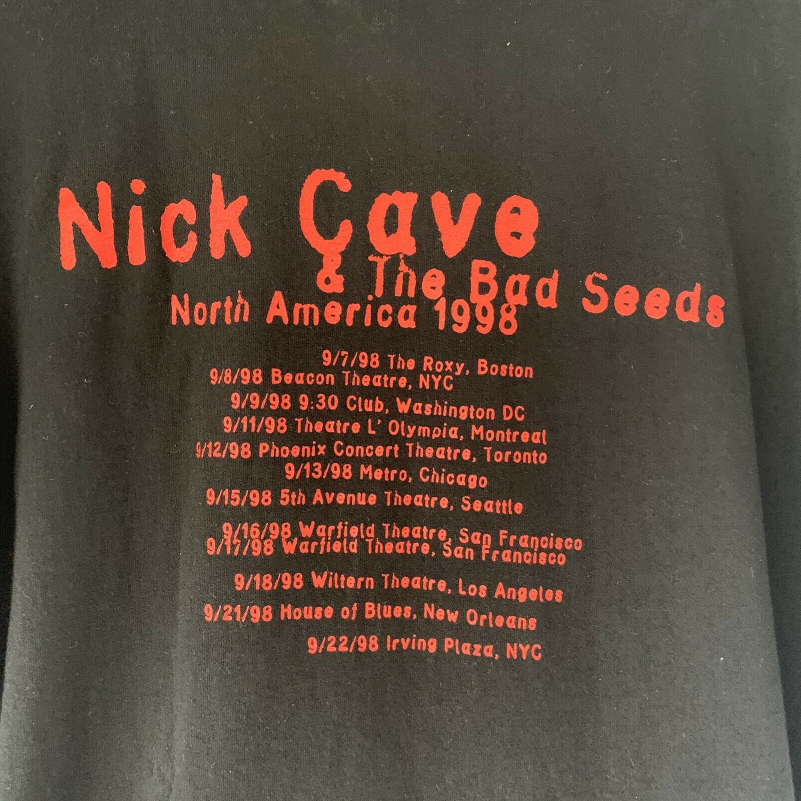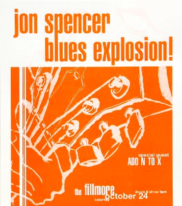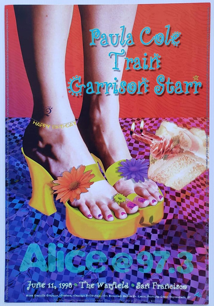 Slightly more accessible, Neubauten was a real band, instruments and all, and Blixa did sing a few songs that one could actually follow along with, though we were inundated with all manner of sounds like roaring jet turbines, ear splitting screeches, and banging metal. One could see how later industrial metal acts like Nine Inch Nails took a page from Blixa. Near the end of their set, they brought out a metal plate set up vertically at a 45 degree angle and periodically poured gravel down in, making the sound sort of like a rainstick, if the beads and stick were metal anyway. I’d say you’d get the picture, but you really need to see this spectacle live to really wrap your head around what Blixa and his crew were doing. The crowd that night were pretty much the same people who showed up to see Nick Cave, well dressed and brooding, just like Blixa. There was however one young woman down on the dance floor near me who screamed like she was seeing The Beatles between every song, a real fan to be sure. The show the following night at The Warfield with Sugar Ray, The Cardigans, Less Than Jake, and Placebo would be obviously a radio friendly, stylistic left turn from this show, though neither of them would get a poster, sadly.