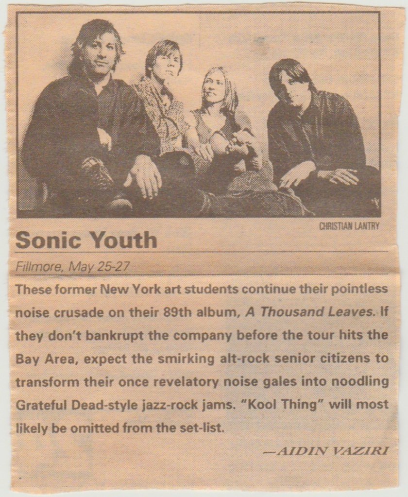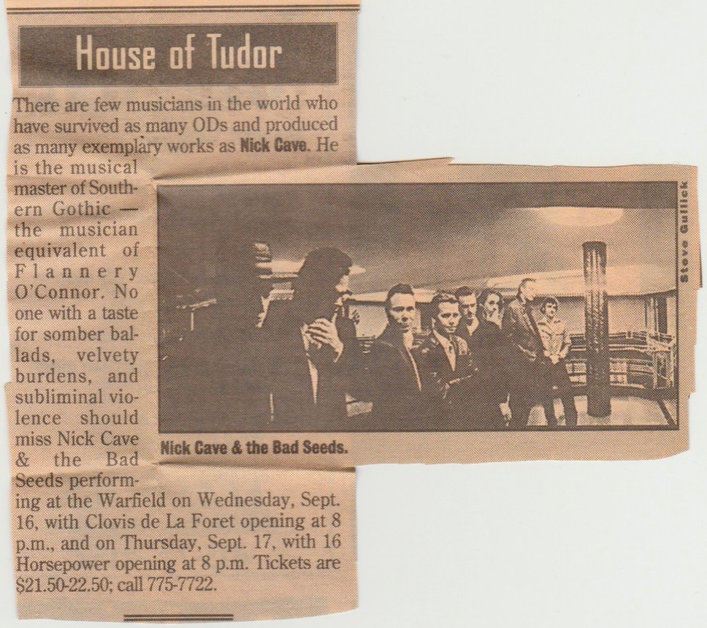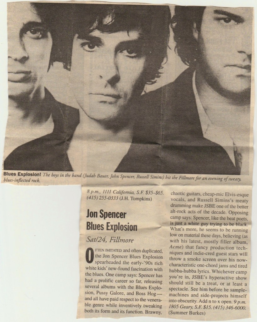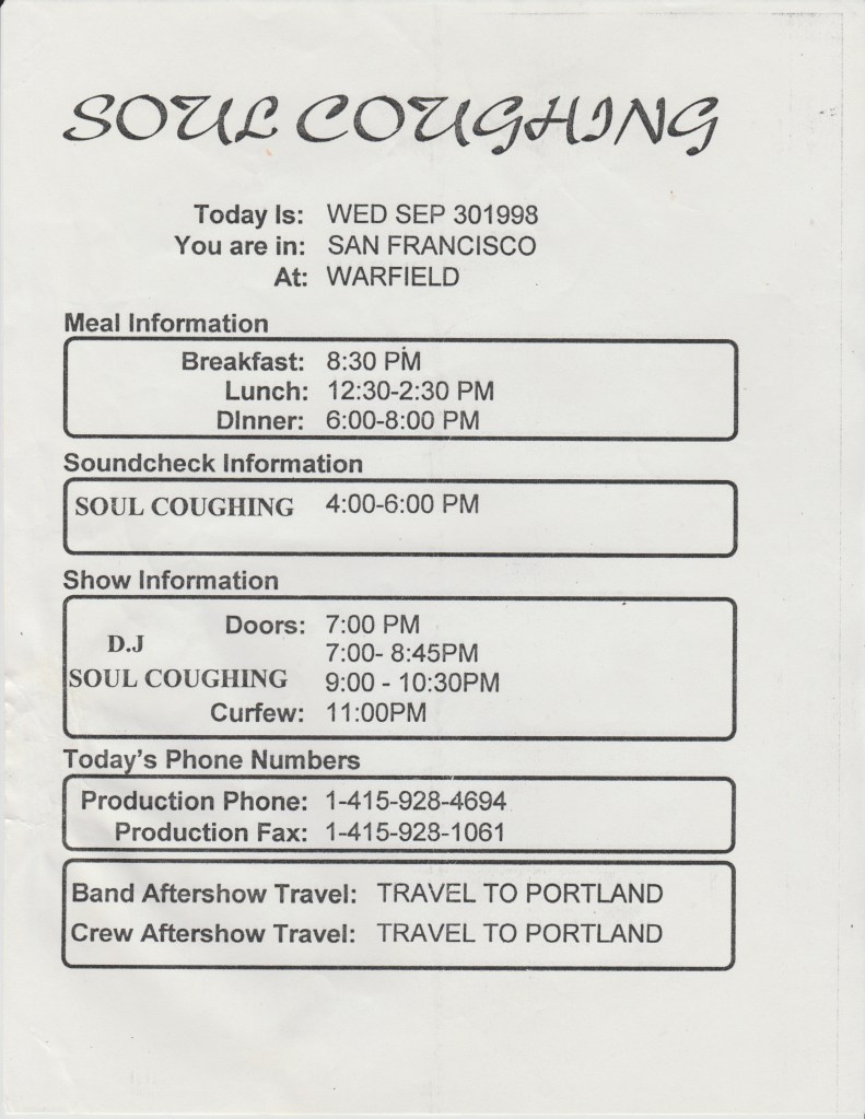 I chose to usher this show, missing the Deftones who were at the Maritime Hall that evening and since Pete didn’t show up for it, they weren’t recorded which is a pity, despite the fact we’d taped the Deftones there once before in 1996. Still, Quicksand was opening for them that night and it’s a shame we didn’t get it. We didn’t tape either of the Zero shows at the Hall that were there a couple days later, though we did that out of choice. We’d taped them enough, already having two live albums of theirs put out by then, and frankly as you might have read before, Pete and I were sick of them. On the lighter side of the news, our esteemed US military dropped a bunch of bombs on Iraq that night in retaliation for not allowing U.N. weapons inspectors to do their thing there, but more likely as a convenient distraction from Bill Clinton’s complicated romantic problems. Three days after this show, he’d be impeached by the House for the whole Monica Lewinski thing, though would ultimately be let off the hook by the Senate. In a strange coincidence, as I write this 23 years later, FX is in the middle of airing their “American Crime Story” miniseries on the subject.
