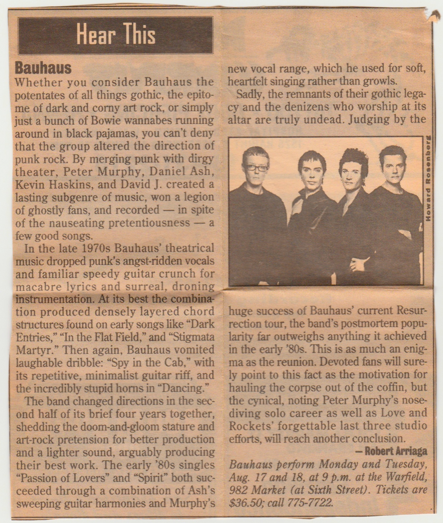 Sisters Of Mercy, Lucky Me, Maritime Hall, SF, Fri., February 6, 1998