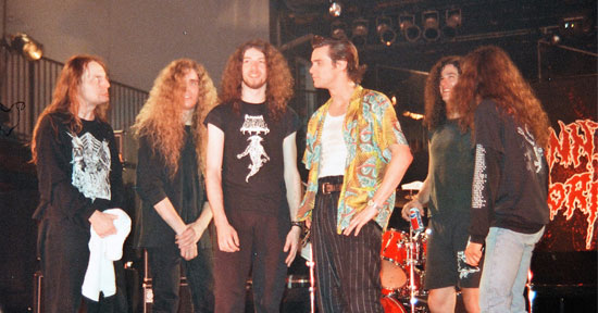 Though I was getting a comprehensive education in both reggae and hip hop at the Maritime, I also was privileged to get to know some of the Goth acts. After all, the first show I’d record with Pete was Christian Death. This time it was The Sisters Of Mercy, a band who I’d heard of, seeing their albums and T-shirts around growing up, but knew none of their music. It wasn’t a total surprise, since they hadn’t released a new album their 1990 album, “Vision Thing”. Their gaunt, moody singer, Andrew Eldritch, had been feuding with his record label, East West, having owed them two more albums, but producing nothing. He even went so far to make a side project album called “SSV” the year before this show which supposedly stood for “Screw Shareholder Value : Not So Much A Band As Another Opportunity To Waste Money On Drugs & Ammunition Courtesy Of Time Warner”. He eventually settled with the record company giving them that album, though they never released it. Bootleg copies of it have been circulating about, though I’ve never heard any of it.