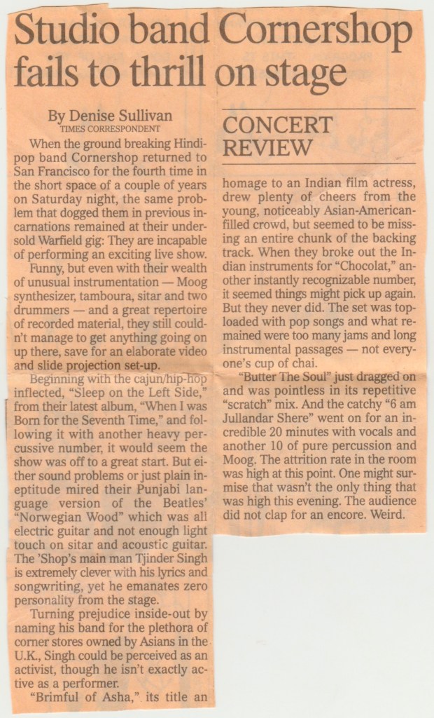 (CORNERSHOP) : Sleep On The Left Side, Wog, Brimful Of Asha, We’re In Yr Corner, Butter The Soul, Good Shit, 6 AM Jullandar Shere