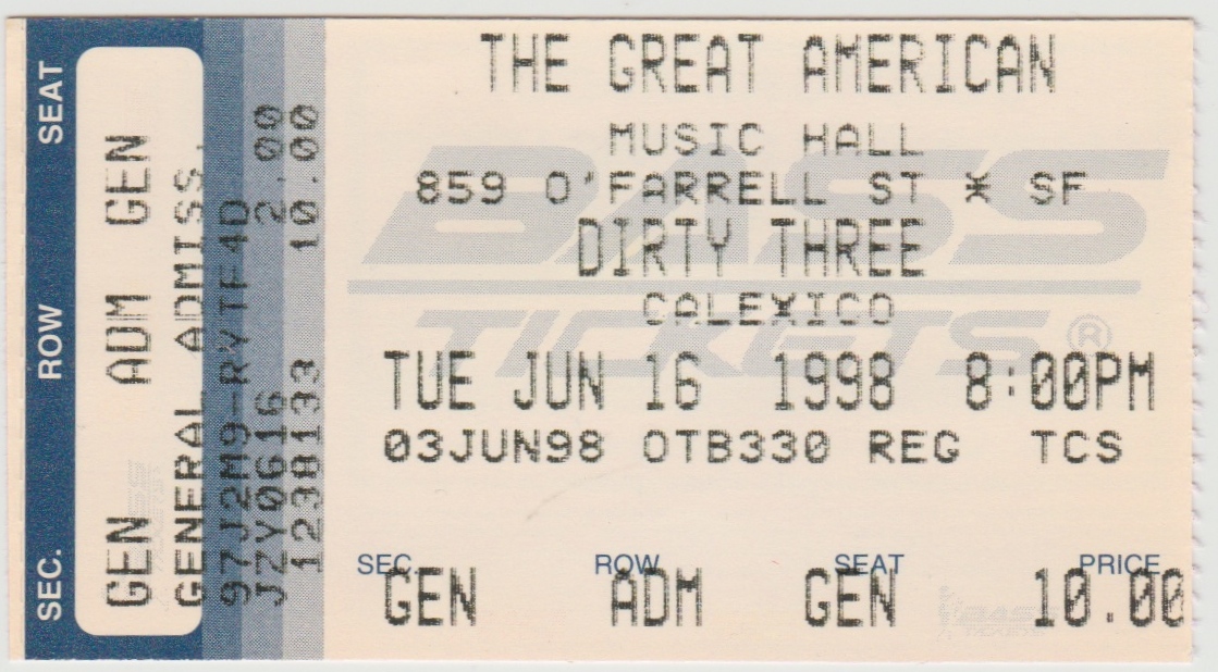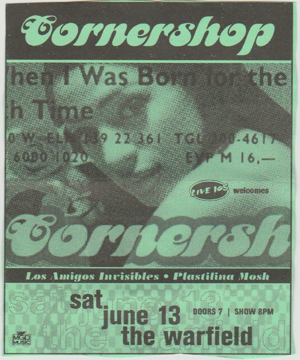 I’d just seen Cornershop as well just two months before when they did a free show at Slim’s. Their album, “When I Was Born For The 7th Time” had really caught on, especially their single, “Brimful Of Asha”. Norman “Fatboy Slim” Cook would remix it that year and the new faster dance version would be an even bigger hit, becoming a staple at dance clubs. It was good to see Cornershop as an opening act again. I know it sounds like a dig, but they are one of those acts like The Mermen or Coolbone that seem to be suited for it perfectly. For not better reason, the crowd wouldn’t be so put off of Tjinder Singh’s notorious standoffishness. It’s strange to me that their music can be so uplifting and beautiful, yet live they can be so cold and distant.