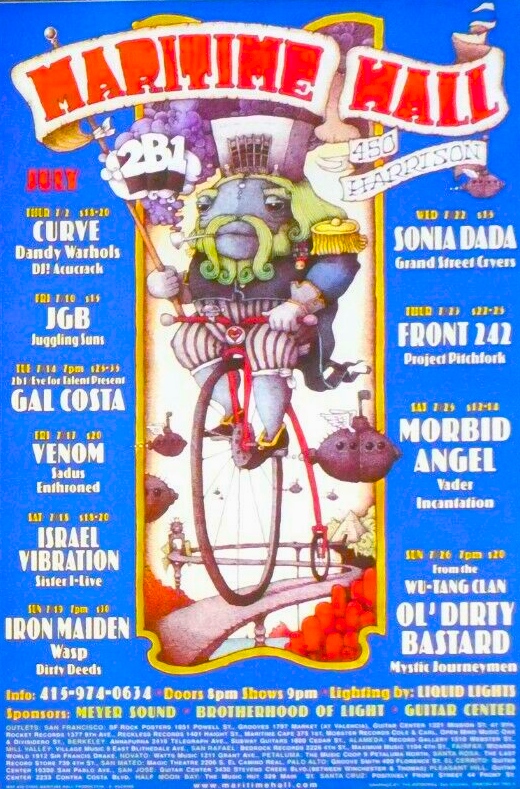 They had an enthusiastic and packed crowd that night, filling the Hall with clouds of weed smoke. Soon after they took the stage, one of them entreated the audience, “somebody pass the weed up in this bitch!”. Then later when they did “Pick It Up”, they had the audience“take a buddha break” and light it up. Women were storming the stage and one got to do a little bumping and grinding with Method Man before she was escorted off into the wings by security. Local rapper Richie Rich, the first from the bay area to be signed to Def Jam, was invited on stage to do some freestyle to boot. Between their collaborations, Method Man did his signature “M.E.T.H.O.D. Man” song and Redman did his jam, “Whateva Man”. They ended their set with “How High” which would be the title of their stoner cult comedy they starred in that would hit the theaters three years later. There were all sorts of random friends on stage holding up posters on sticks of album promos and they gave shout outs to lots of other local artists at the end, including Dru Down from Oakland. I would actually see Redman again only just a day shy of three weeks later, performing in the Snocore tour at The Warfield with Everclear, Soul Coughing, and DJ Spooky, quite a different show from this one indeed. The duo would return to the Maritime in 2000 and I would get to record them again, but it wouldn’t be until 2002 at The Fillmore that I’d see Method Man finally with the Wu Tang Clan for the first time.