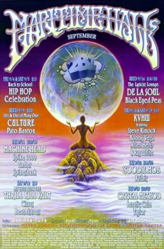It had only been since the previous September that Busta released his latest album, “When Disaster Strikes” and he played the Maritime with EPMD. That show was a bit of surprise, booked at the last minute and sold out instantly. But after a few months, the album kept selling and he was even bigger by this show. Luckily, Pete still didn’t know how big a deal he was and didn’t care at all for hip hop acts, so he left me to take care of this one on my own again. This would be the first time I’d see Oakland own Mystik Journeymen. The rap duo of Luckyiam and Sunspot Jonz had been a bone fide DIY hip hop force in the east bay, putting out their own albums for a few years and had a respectable reputation around. They had just released their new album on their Outhouse record label called “Worldwide Underground” that year and would go on to play the Hall several more times to come as themselves and with the Living Legends. They got the crowd all warmed up and it was easy to like them. The Journeymen have got real talent, always a reliable opening act.
