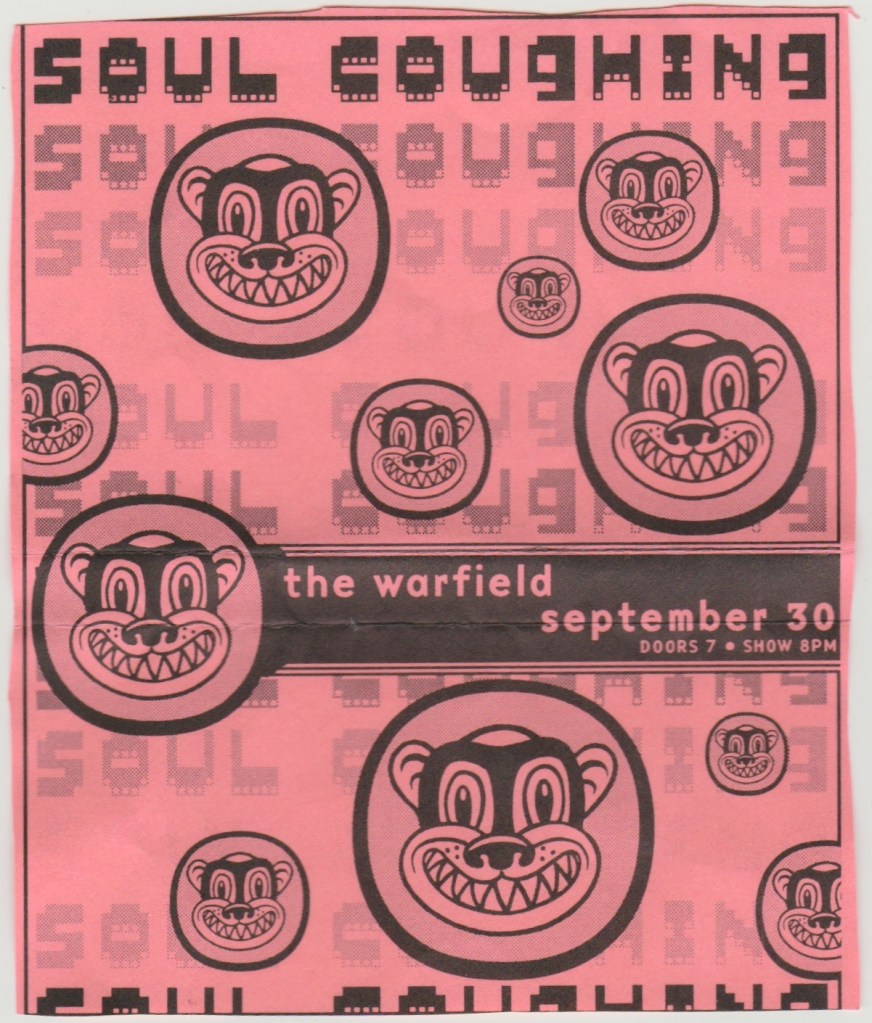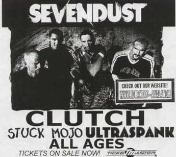 It was the height of the so-called “nu-metal” movement back then typified by bands like Korn, Limp Bizkit, Staind, and the like. There was no shortage of talent and Sevendust was one of them and was brand new back then. They were from Atlanta and had just released their first self titled album the previous April. Sevendust derived their name from an insecticide powder called “Sevin” that was found in the garage of their bassist, Vince Hornsby’s grandmother. They originally were called Crawl Space but had to change it when they discovered a band in L.A. with the same name. Happens all the time to bands when they’re getting started especially as time goes on and more and more band names get snatched up. I saw them a few times over the next few years, including when they came back to play the Hall again in October. And though there are some other examples of black man singing for heavier guitar driven acts like Bad Brains, Fishbone, Oxbow, and Living Colour, it’s always good to see some diversity on stage. Their singer Lajon Witherspoon has an impressive set of pipes. As usual, Boots had a typo on the new monthly poster calling Sevendust, “Sevendusk” and the Space Children show never actually happened, whoever they are.