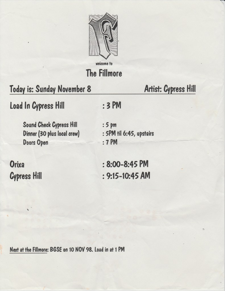 These guys had been having a busy year, though they were just beginning their famous collaboration. Their first album together, “Blackout!”, wouldn’t even be put out until September the following year, which would be a big success debuting at number three on the Billboard 200 charts and going platinum. Method Man told the crowd at the end of the set to keep an eye out for it. They originally were going to call the album, “America’s Most Blunted”, which I thought was a clever name, but that’s how it goes. Method Man had just released his second solo album, “Tical 2000 : Judgement Day” less than a month before this and he had a role in the crime drama “Belly” that year as well. Redman too had a few projects under his belt that year, releasing his fourth studio album, “Doc’s Da Name 2000”, just five days before this show and performed its single “I Bee Dat!” for the first time in the bay area. He had also took part in the hip hop super group, the Def Squad, with Erick Sermon of EPMD who had discovered him years ago, as all as Keith Murray and Hurricane G. They put out the record “El Nino” and both that album and his new one also went platinum.