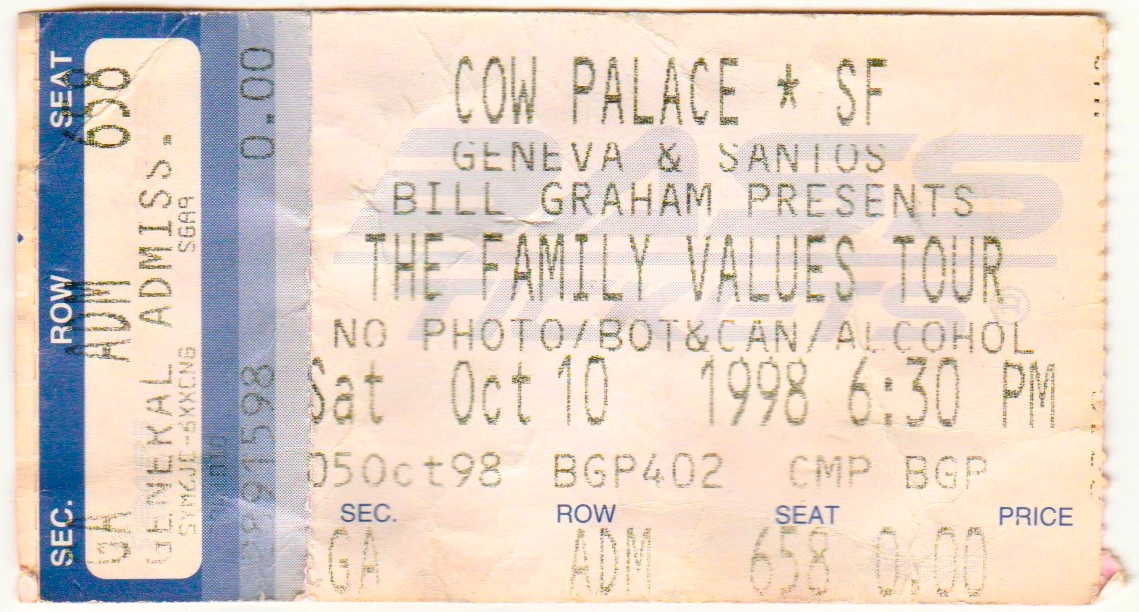 Incidentally, it had been a hell of a week, this night ending a six concert in a row run. Quite a variety of acts that week. Like Los Lobos and Molotov, Ozomatli would change seamlessly between genres and make it their own. There are few bands that new which would make that kind of impression on me. Naturally, I didn’t know their songs or their setlist, but I do know the second last song they played in their set was “Super Bowl Sundae”. At the end of the set, they slowly marched single file into the crowd with percussion instruments, jingling bells, and the trumpet player and did a sort of second line thing like they do in New Orleans. They got the crowd to dance and clap along as they snaked their way through everybody for a couple minutes and eventually ended it, going backstage. They would do this ending many times that I would see them in the years to come. Speaking of which, it wouldn’t be for another five years until I’d see them at The Warfield opening for the All American Rejects, but only two months later, I would see them headline their own show at The Fillmore. They would play there often, almost every year, and even released a live album recorded there in 2005, though sadly I wasn’t there to attend that one.