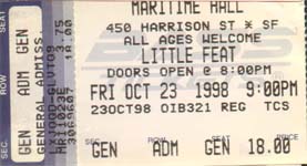 Psychedelic Ball : Toots & The Maytals, Merl Saunders & His Funky Friends with Bill Kruetzman, Nick Gravenites, Maritime Hall, SF. Thurs., December 31, 1998