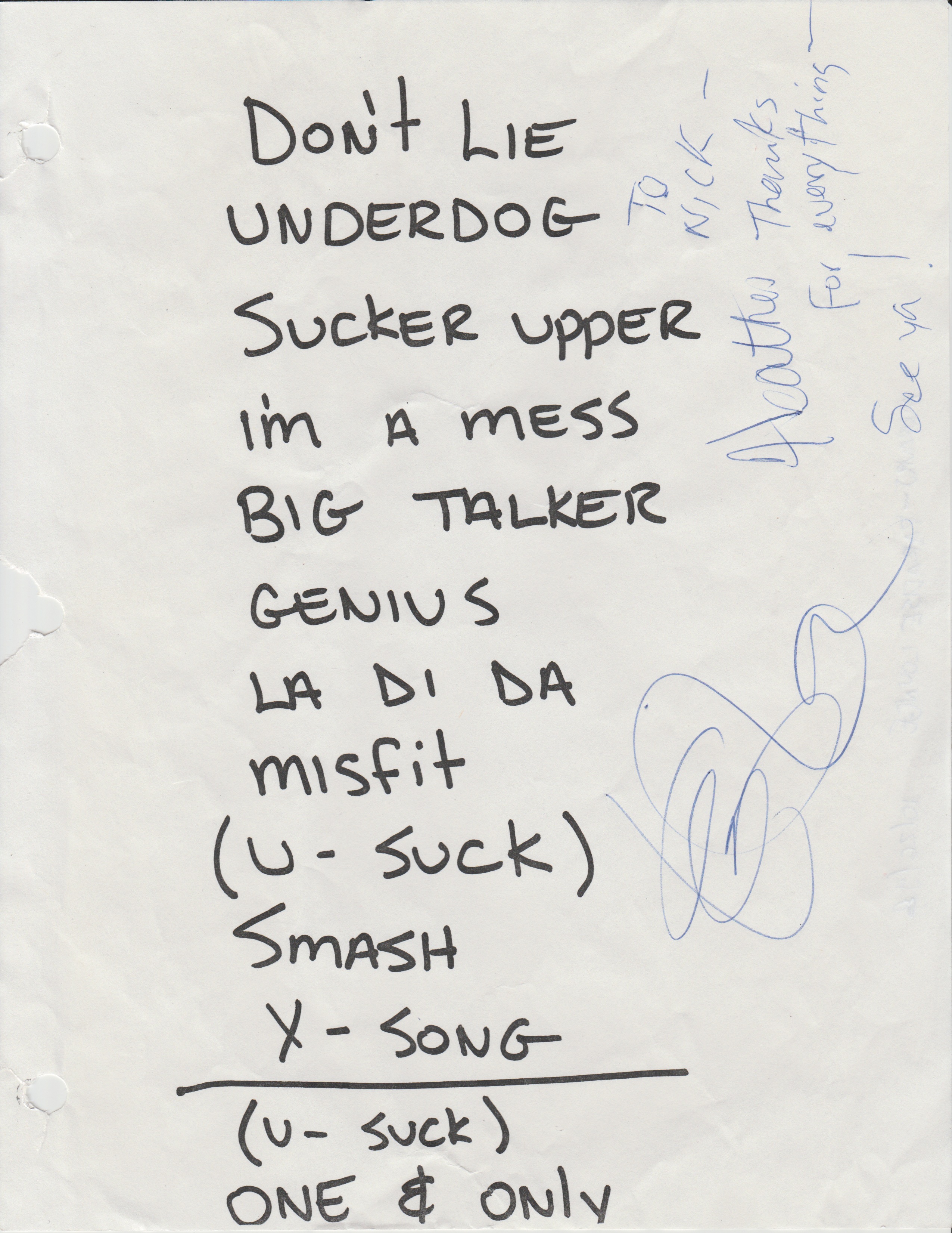Their dreamboat frontman, (seriously, the girls at the show went nuts for him), Mark McGrath, would eventually do all sorts of TV work, from hosting and competing in celebrity game shows, to a cameo on “The Office”, to starring in the second “Sharknado” movie. As corny as he is, I appreciated that he was a fan of Lynn Strait the frontman of fellow So-Cal punks Snot, who would die tragically in a car crash the day after this show. Mark would contribute to the song “Reaching Out” on the tribute album, “Strait Up” a year later and even get a tattoo to memorialize Lynn. It’s hard not to like Mark and he graciously thanked all the other bands at the end of their set. I was even a little pleasantly surprised when he encouraged the crowd to see Incubus at the Maritime the following night, the Hall being the competitor to The Warfield, but obviously Mark didn’t know or care. I would miss that Incubus show though, seeing Depeche Mode in Oakland instead that night.
