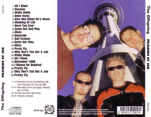 As mentioned about the show before, this would be a complete change of pace from the Einstuzende Neubauten show the night before at The Warfield. It would be highly doubtful that the teenage suburban crowd from this show would have gone for the German experimental band, but I think the mind fuck would have done them some good. Speaking of mind games, there was some bit of confusion on my part over the show’s very existence when I was doing research and listening to it again. It was being billed as Live 105’s annual “Not-So-Silent Night”, but was strangely enough competing with another show from the station with the very same name that was being performed that night down in San Jose at the Event Arena. At first, I thought I’d gotten the year wrong or something. Suffice to say, the San Jose show boasted a much more impressive line up with Cake, Everlast, Garbage, Hole, Rancid, Soul Coughing, and The Offspring. As much as I would have enjoyed that show, the drive down there and back is always a headache and I’d just seen Soul Coughing in September also at The Warfield, The Offspring just two weeks before at The Maritime, and I’d seen all the others at least once before then with the exception of Everlast, though I’d seen him a couple times as the frontman for the House Of Pain.