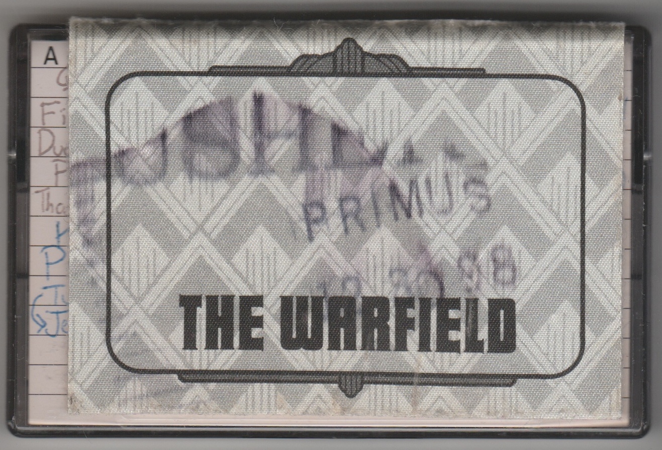 Herb was keeping busy with that band and would put out their second album, “Motivator”, the following year and I’d see them one final time opening for A Perfect Circle at that very venue before he would move onto other projects. Earlier in 1998, Herb also put out an album with a group called Attention Deficit with ex-Testament guitarist Alex Skolnick and renowned session bass player Michael Manring. Herb would even play drums briefly for A Perfect Circle as well as the Blue Man Group. With his already shaved head, Herb fit right in. MIRV was fun as always, a band that had long played with Les opening for Primus as well as his other solo projects. Bryan Kehoe would once again regale us with his passionate rendition of the Neopolitan standard, “O Solo Mio”. Kehoe would eventually team up with Les to do the Duo De Twang side project years later. This was actually the first time I’d seen Primus play the Warfield since 1992, before I was ushering, and before that I saw them there in ’91 with The Limbomaniacs opening, MIRV’s old band. During one of their songs, MIRV played a few licks of “Auld Lange Syne” on his guitar too, but other than that, the only other song I knew that they played that night was “Unabomber”, which had MIRV repeatedly chanting “Bow-wow-wow-yibbee-yo-yibbee-yay” from P-Funk’s “Atomic Dog” in a creepy guttural tone.