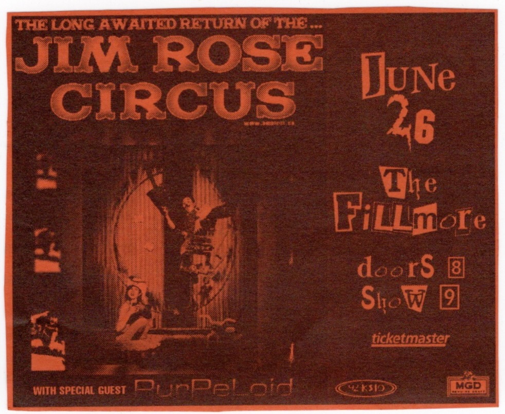 The Jim Rose Circus, PurPeloid – Fillmore, SF, Wed., June 26