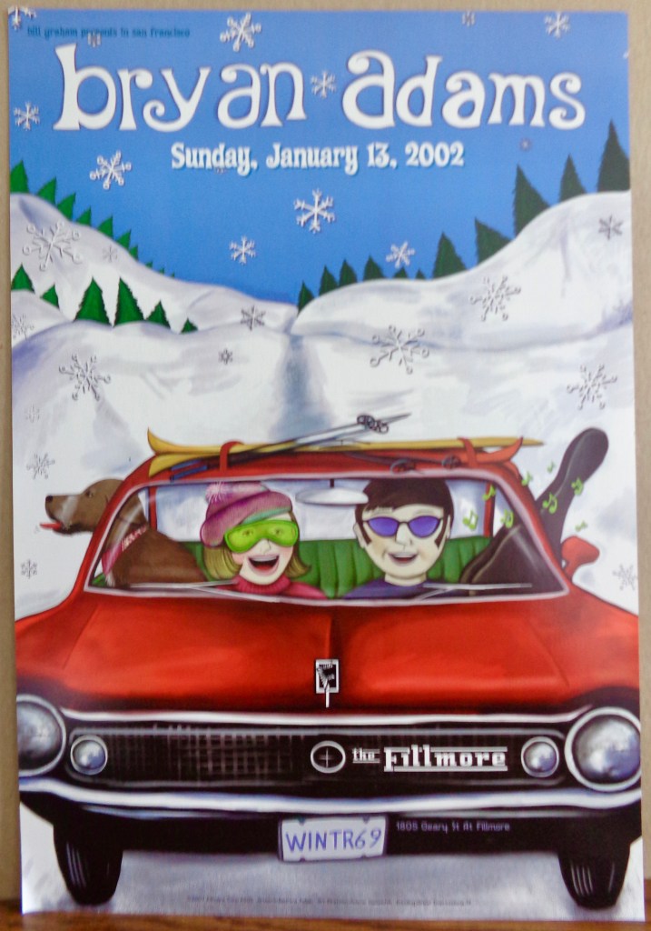 They went on to do a couple acoustic numbers from his “MTV Unplugged” album which featured the “Spanish guitar stylings of Keith Scott”.Like I said, I knew all the hits and though some were a touch on the cheesy side, I couldn’t help but reluctantly appreciate when he did “Run To You” during the encore. It’s a pretty solid rock song. By the time he wrapped up, he and the band had clocked in a respectable 2 hours and 10 minute set, longer than I expected. They had a pretty good poster for this one too and being January, it was a cartoon of a couple in a red car with skis, a dog, and the license plate “WINTR69”, driving though snow capped mountains. It helped to make up for the absence of one at the Blind Boys Of Alabama show two nights there before this one.
