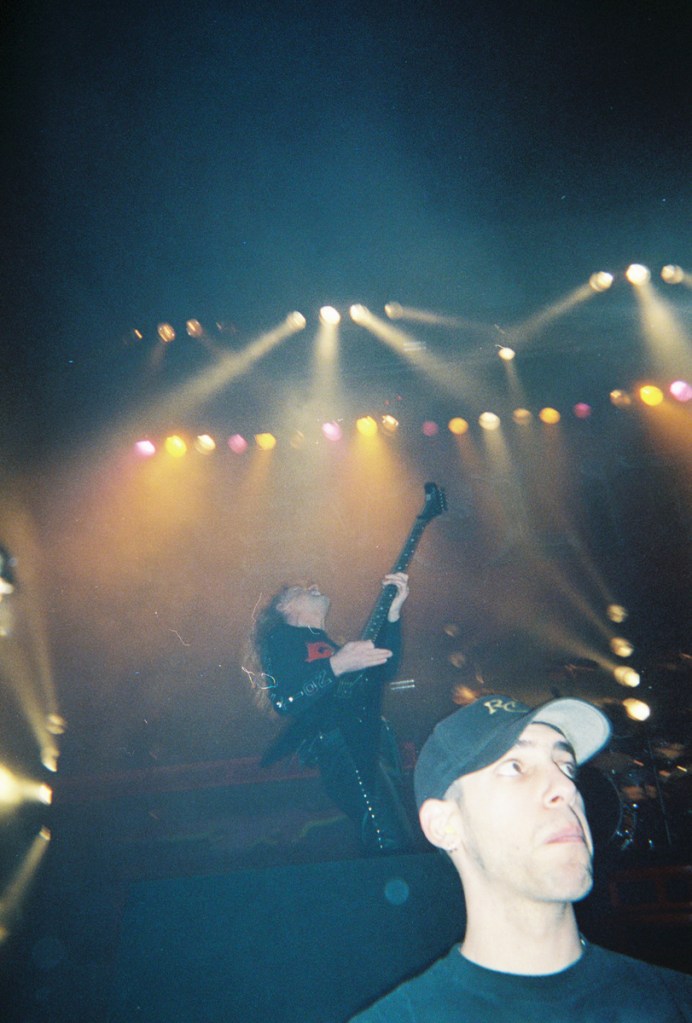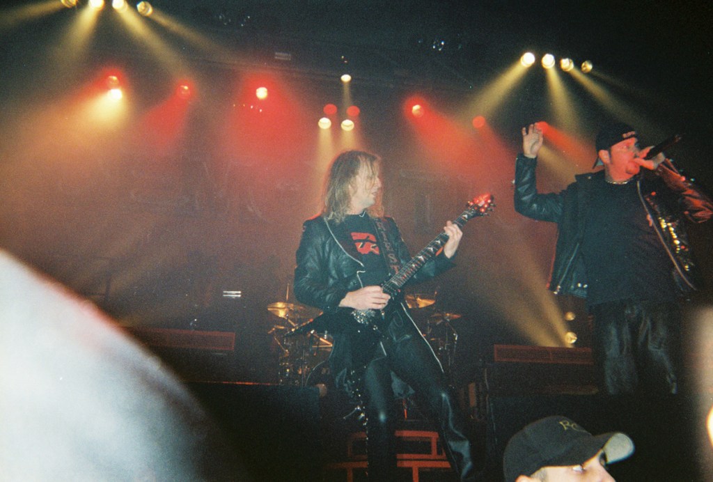 But who was there to open was a band I was familiar with and really half the reason I wanted to go to this show, being Anthrax. I had seen them at The Fillmore in 1995 as well as headline a show of their own at The Warfield two years before this. And then there was the Anthrax side project Stormtroopers Of Death who I recorded at Maritime Hall in ’99 who ripped off the video we did and put it out on a DVD without giving me a single line of credit, not to mention one thin dime. My feelings are still hurt from that one, but I digress. A previous tour had been recently planned employing both of Anthrax’s singers, their current singer John Bush and the former one, Joey Belladonna, but that fell apart after their label Beyond Records went out of business. To make matters worse, there were the notorious anthrax attacks shortly after 9/11, prompting them to immediately change their website to display only information about the disease. They joked that they would temporarily change their name to Basket Full Of Puppies until the heat blew over. Addressing the elephant in the room early in their set, John declared, “We are the real Anthrax! Not some fuckin’ letter in the mail!”