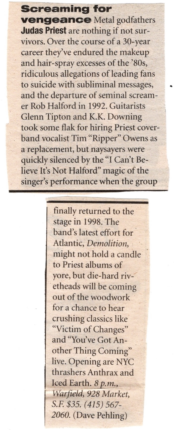 Judas Priest, Anthrax – Warfield, SF, Sat., January 19