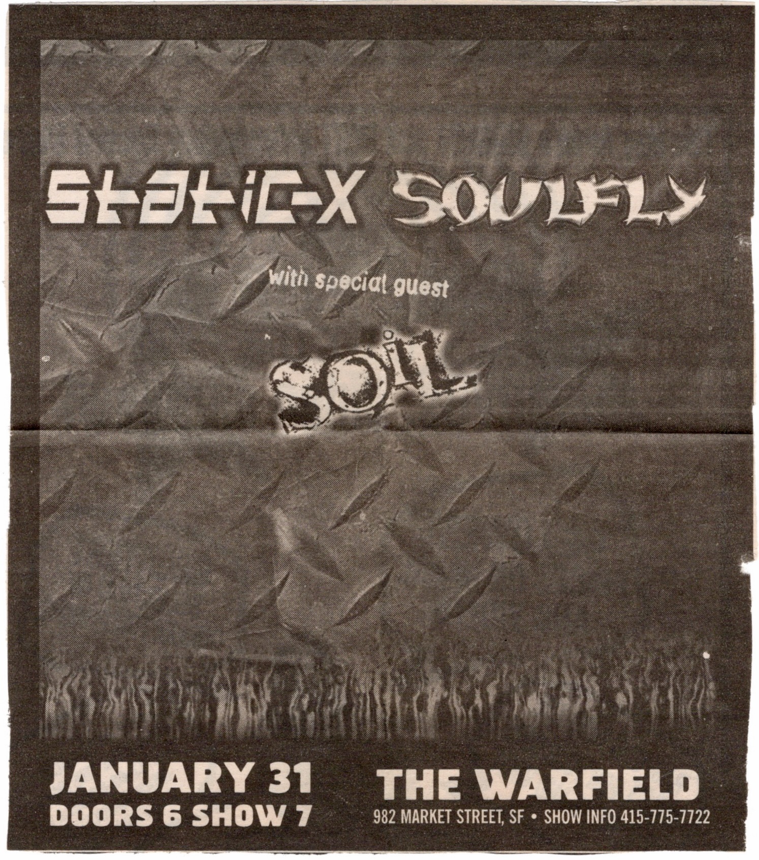 Static-X, Soulfly, Soil, Diesel Machine – Warfield, SF, Thur., January 31