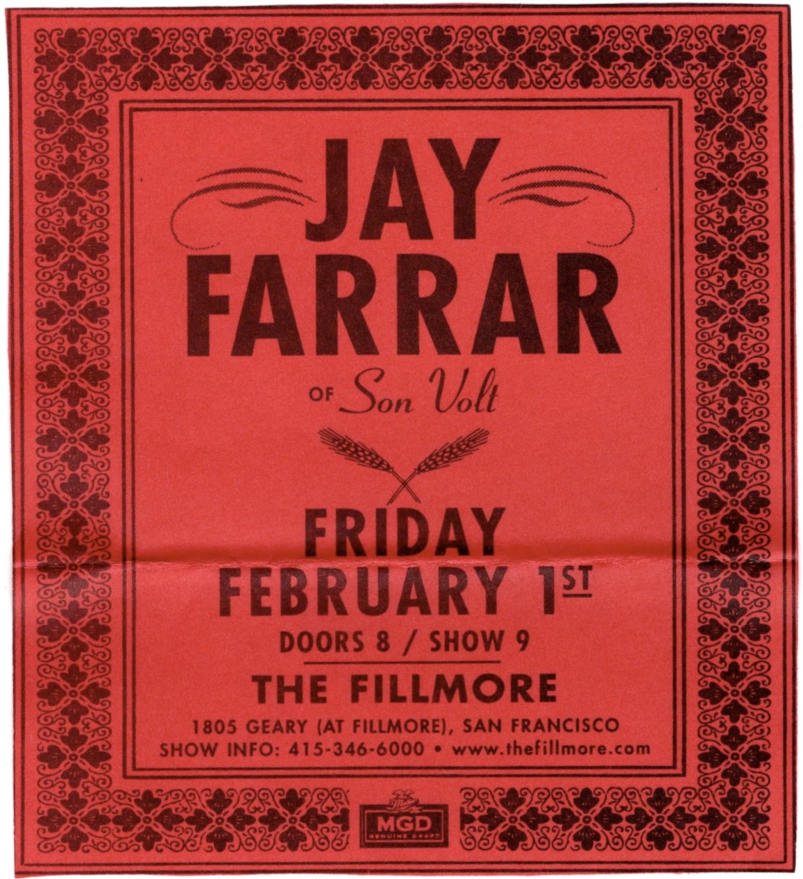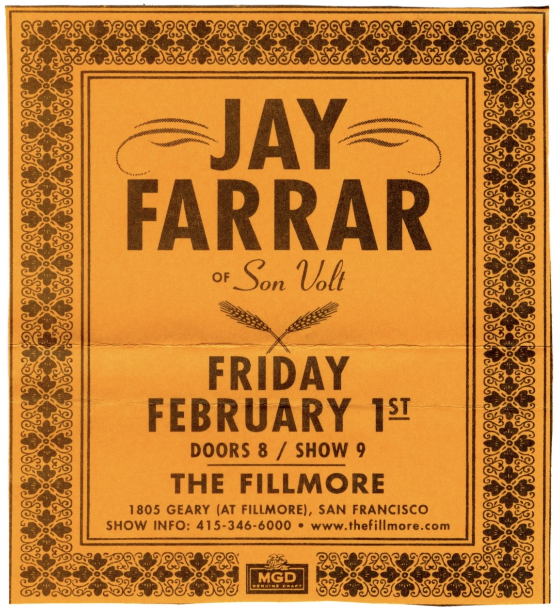 Jay Farrar, Brian Henneman, Katie Cline – Fillmore, SF, Fri., February 1