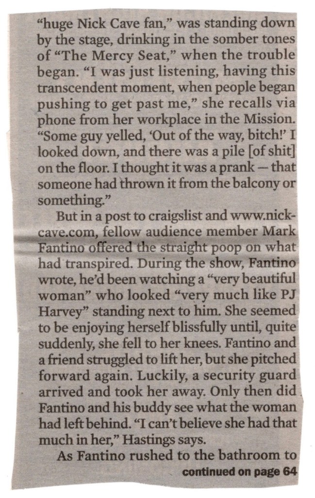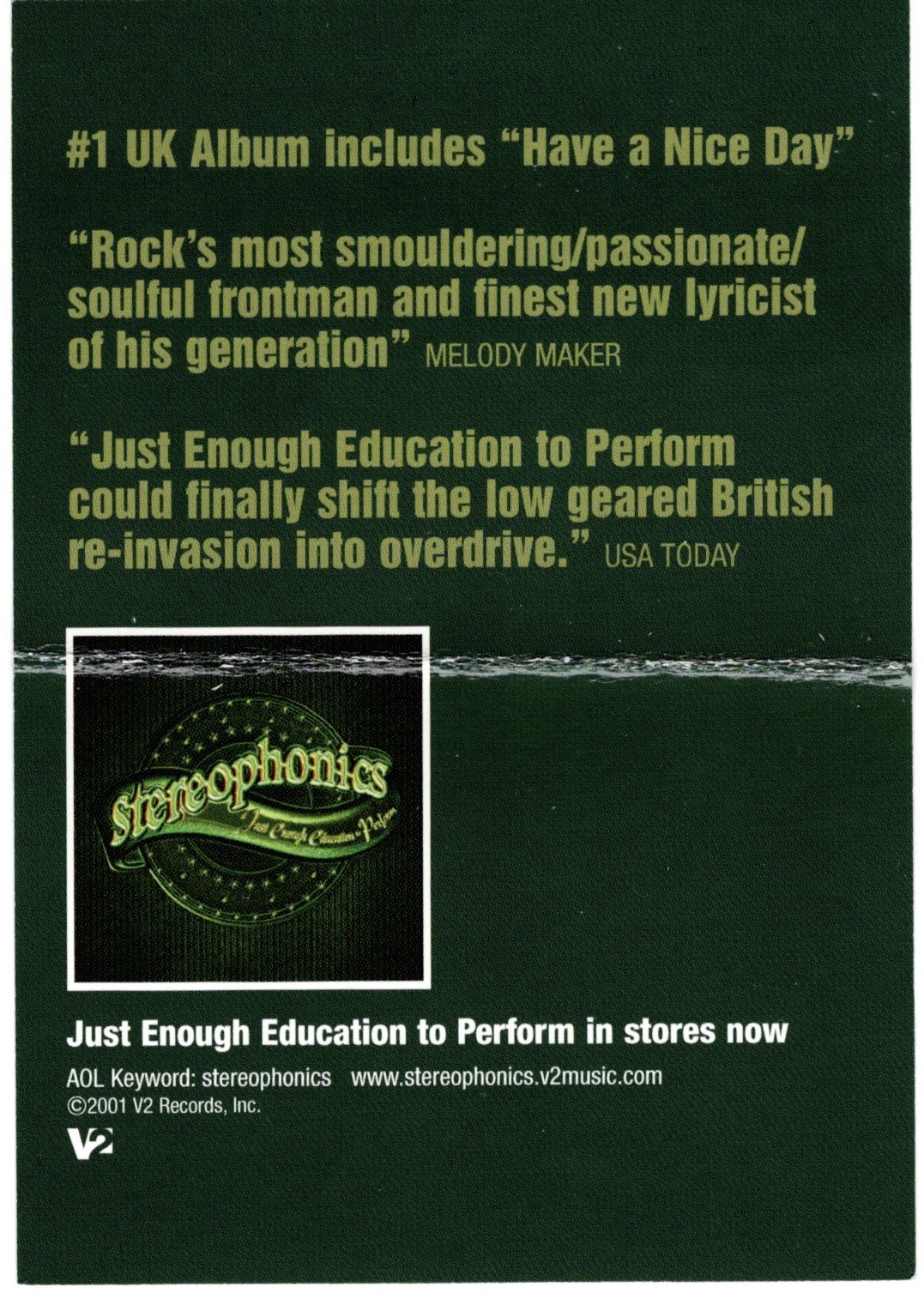 But back to the show at hand. Stereophonics came from Wales, diligently making music since ’92 and their hard work was finally paying off. Their latest album, “Just Enough Education To Perform” was a hit back home, staying number one on the the charts there for two weeks and going five times platinum. Indeed, they would be the first band to be signed Virgin Records, owned by renowned, billionaire harlequin Richard Branson. Despite all Stereophonic’s undeniable success, leave it to one critic in the Observer Music Monthly named Tony Heyman to cruelly, though eloquently describe their new album as “musical excrement, scooped unhygienically from a poorly maintained squat toilet in an area without adequate sanitation… If the CD wasn’t laminated, the insert booklet could be distributed to third world communities as toilet paper”… Ouch. Well… as Mark “Chopper” Read once said, “Beethoven had his critics too.. See if you can name three of them”.