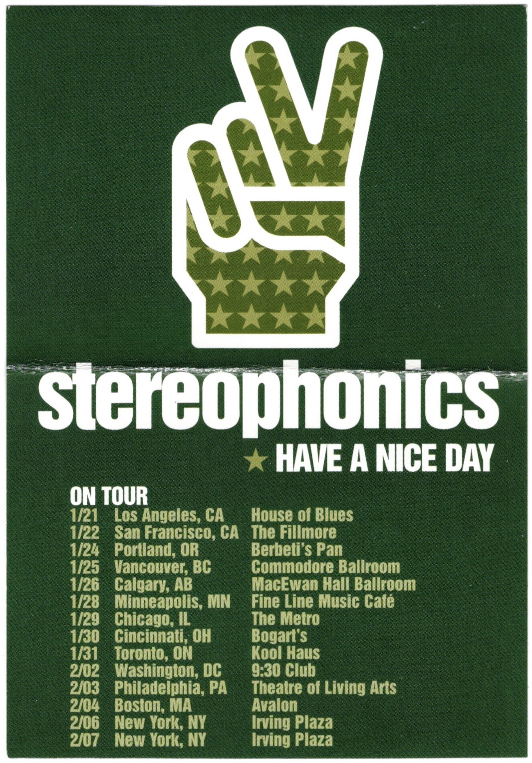 Stereophonics, The Fingers, JJ72 – Fillmore, SF, Tues., January 22