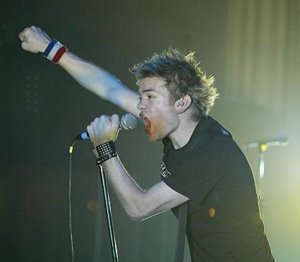 They kept the devil worshipping theme going during the next song “Summer” doing a few licks of “Raining Blood” by Slayer, who had coincidentally recorded their “War At The Warfield” DVD there just a month before this. Dave Baksh, the lead guitarist later joked, “I fucked this up… Make something up before someone notices. Going to make a shitty dance with my guitar solo. Like it up top? I don’t think people down here didn’t. I’ll show you a thing or two on guitar!” Deryck said, “Show them a thing or three!”, Dave did a little solo and he congratulated him, “Nice work, pal”. Continuing their metal fetish, one of them did a little riff of “Enter Sandman” by Metallica before asking, “Any you guys have a crazy psycho bitch of a girlfriend? Then you’ll understand this song” and they did their hit, “In Too Deep”. Afterwards, Deryck declared, “It’s been a fuckin’ day. Everybody say ‘Fuck Yeah!’ Everybody say ‘Fuck You!’” A guy up front propositioned him, but he replied, “Why you say that, dude? I already got a boyfriend. His name is Dave”.