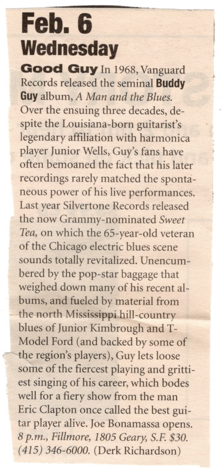 Buddy Guy with Carlos Santana, David Gleeson & Wasted Days, Joe Bonamassa – Fillmore, SF, Wed., February 6