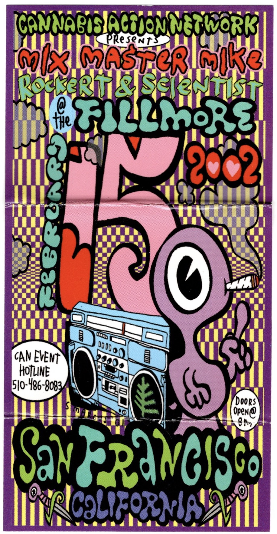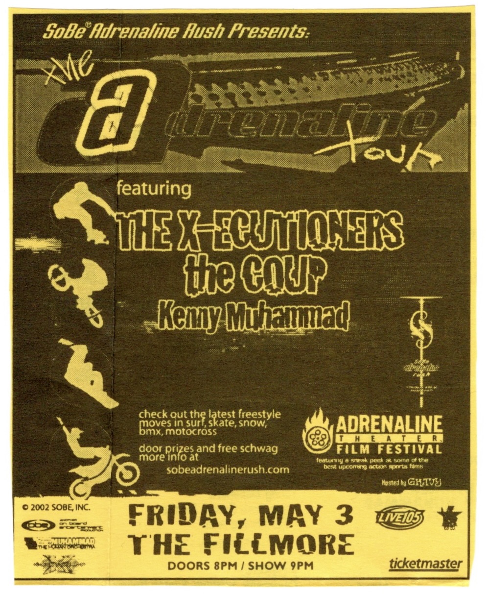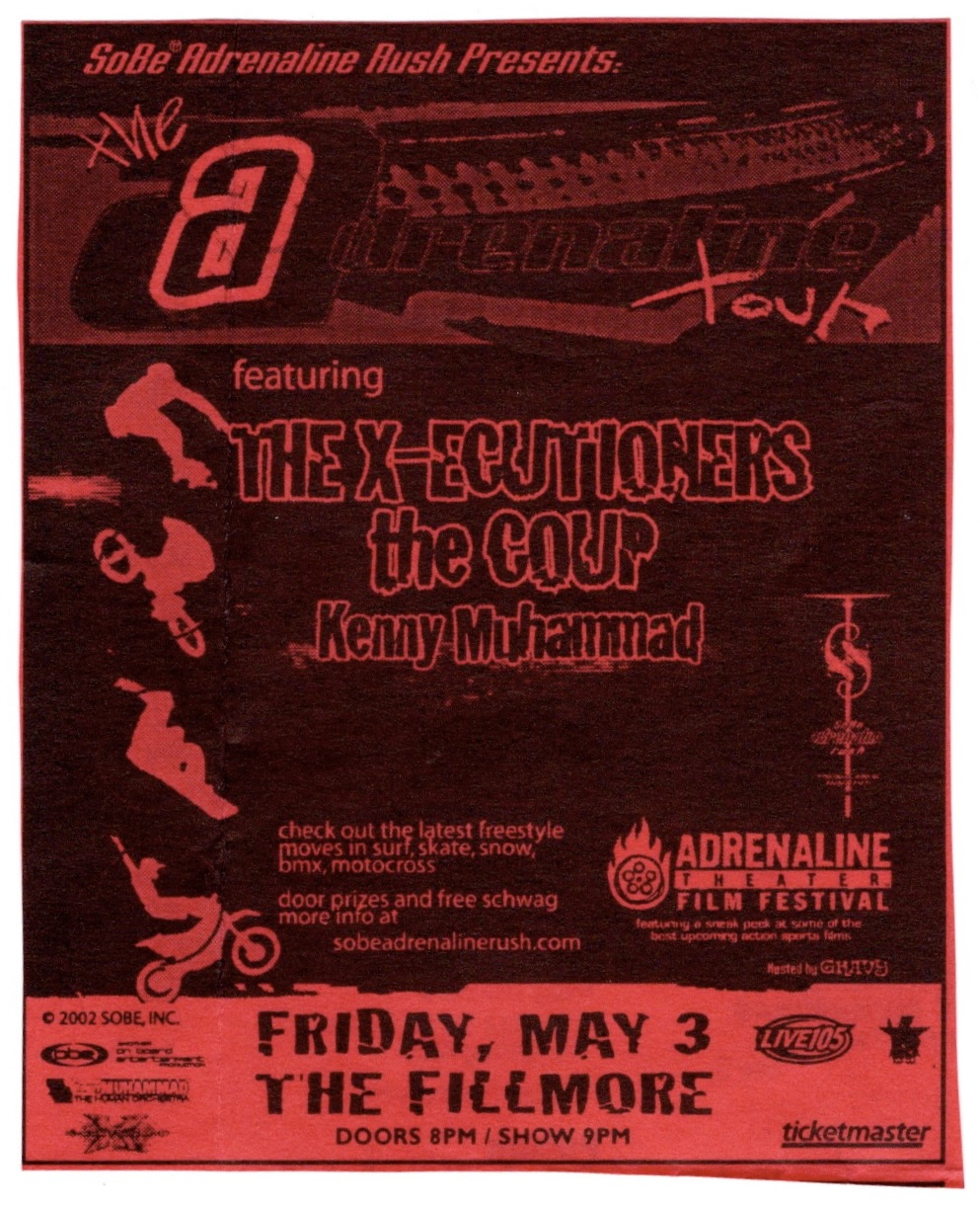I’m just glad that I received a poster from this show to commemorate this momentous occasion, especially since it had officially ended a seven show poster draught. Still, I have to admit that I liked the poster The Fillmore made for the following evening better, one of those rare occasions where they printed two completely different posters for back to back shows. My guess is that the first poster had already gone to print by the time they added the second show. I would get only one night off before beginning an exhausting stretch of TEN shows in a row, the first three on that very stage, two with The Get Up Kids followed by one with the Hieroglyphics.