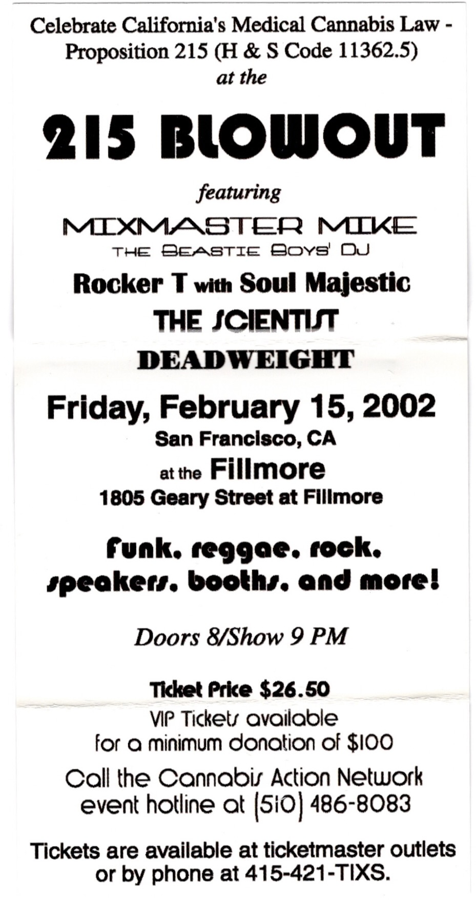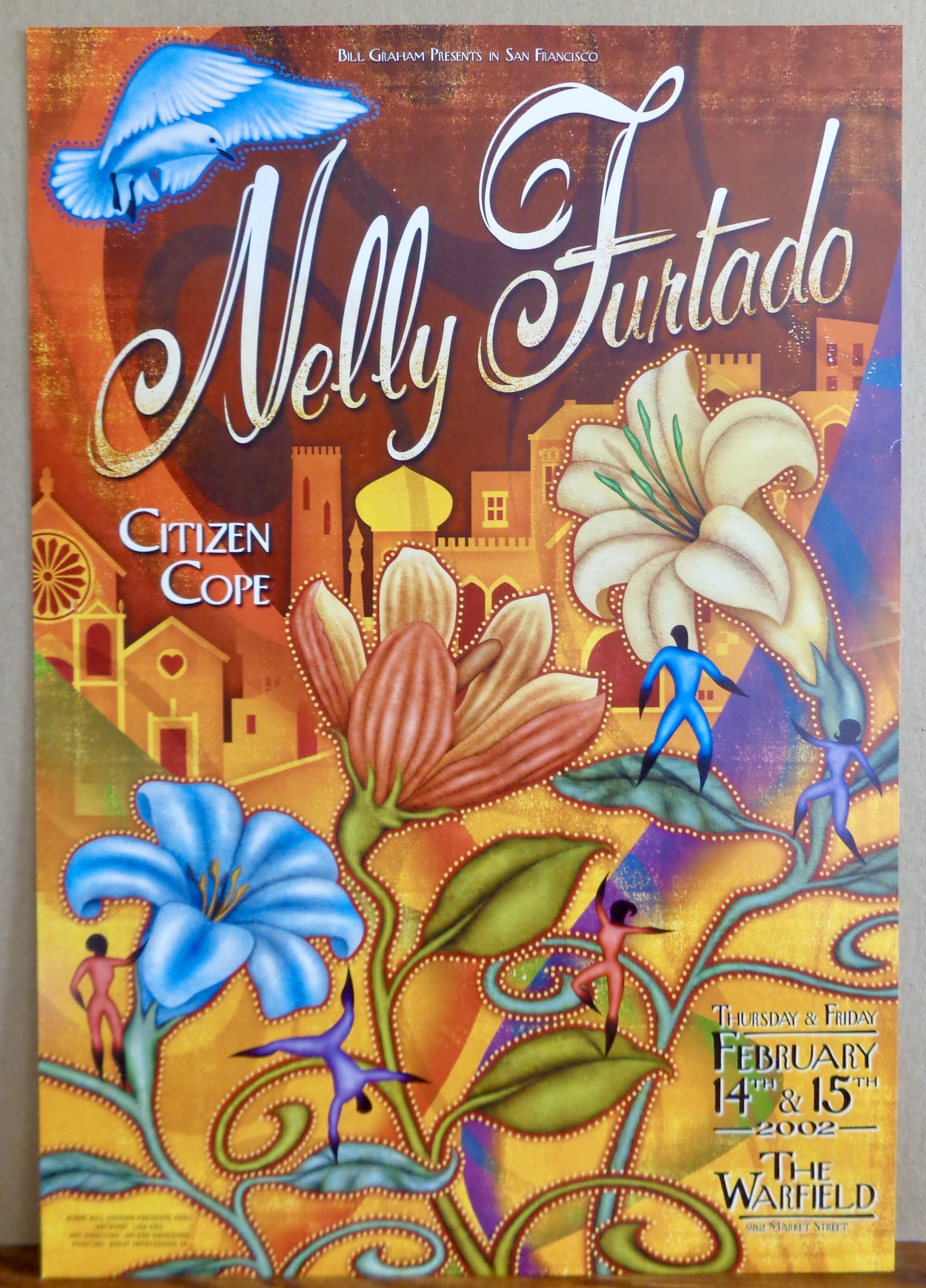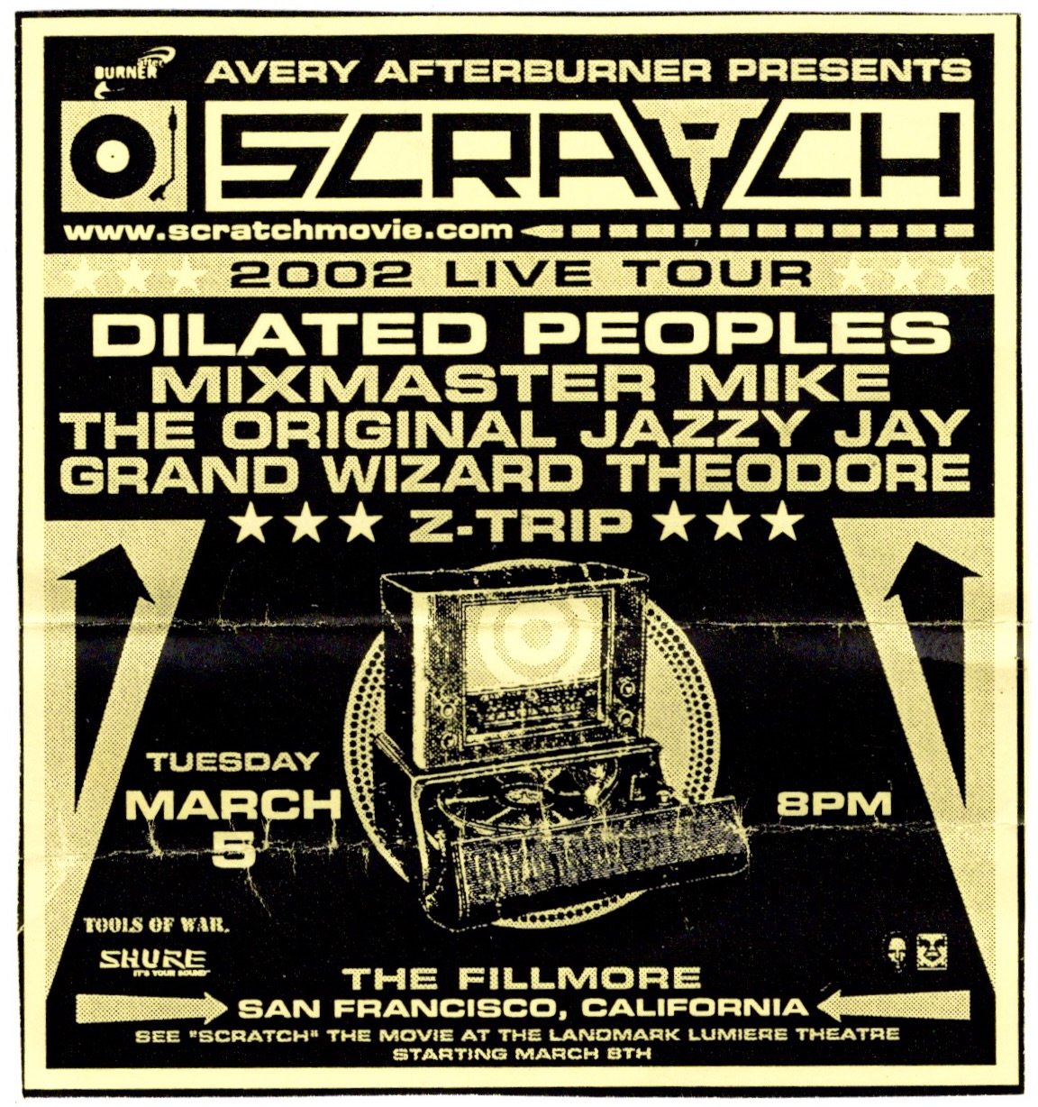 I’m just glad that I received a poster from this show to commemorate this momentous occasion, especially since it had officially ended a seven show poster draught. Still, I have to admit that I liked the poster The Fillmore made for the following evening better, one of those rare occasions where they printed two completely different posters for back to back shows. My guess is that the first poster had already gone to print by the time they added the second show. I would get only one night off before beginning an exhausting stretch of TEN shows in a row, the first three on that very stage, two with The Get Up Kids followed by one with the Hieroglyphics.