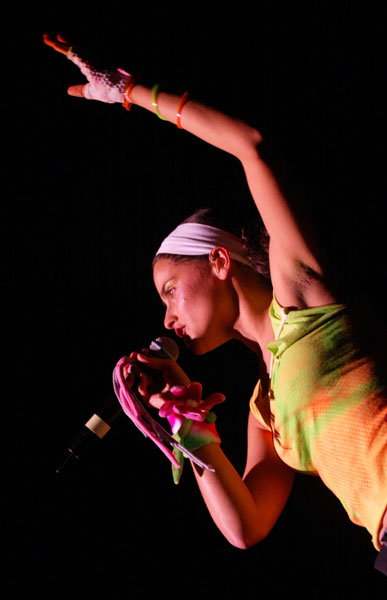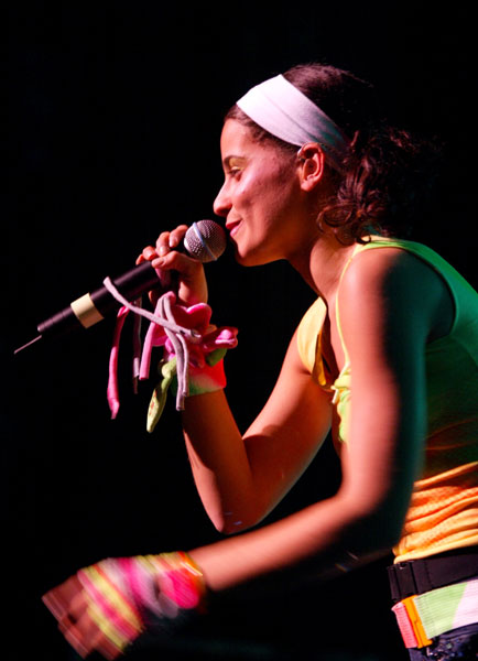 There was a DJ spinning records for a while before her band came on stage to join him and they transitioned seamlessly into her first song, “Romantic”. Like I said, Goapele was more of an R & B artist, but from the first few seconds after she started singing, she had won over the crowd already. Seriously, that’s not an easy thing to do. The Hiero crowd is difficult to impress, especially for an artist of another genre. The brilliance of her songs and the seriously soulful quality of her voice made it obvious that this was a woman who had studied music for real. A couple songs in, she introduced their cover of “Soweto Blues” saying, “This next song I’m going to do is dedicated to all those who fight for struggle and all those whose parents and families fight for struggle and everybody we know who got in trouble for struggle. This song is about the Soweto youth uprising in 1976 when the youth younger than us got together, the elementary school, the high school students, to march in the streets to keep our own language, our own culture, to have equal education and they were killed. But it wasn’t in vain and Miriam Mekeba wrote this song.”