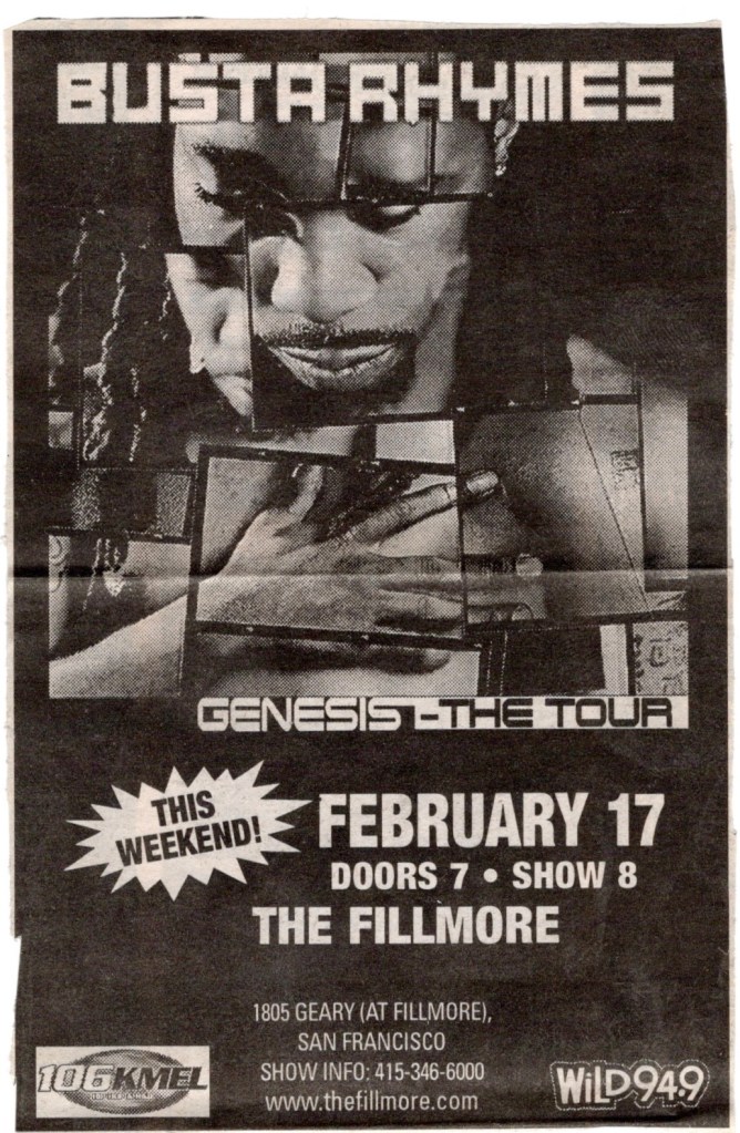 Though I had seen members of the Hiero crew since the last time I recorded them at Maritime Hall back in 1998, this would be the first time I’d see them assembled together since then as well as the first time I’d see them headline at The Fillmore. I had written extensively about the origins and escapades of this east bay cavalcade of hip hop artists for years, so feel free to return to some of my previous entries for more extensive back stories. But for now, I’ll keep it tight. Since the aforementioned Maritime’s sinking the year before this show, I had made a point to see as much hip hop when it came to The Fillmore or Warfield, since such shows were few and far between. Thankfully, the Hieroglyphics had been busy touring separately and together, and though each member had released several solo efforts, the crew was finally on the verge of putting out the long awaited follow up to their debut album. “Full Circle” wouldn’t be released for another year, but they were already showcasing some new material from it that night. Apologies that I was unable to decipher about half the set, but those jams came fast and furious, some being straight up freestyle anyway. Still, there were plenty of golden oldies in there that I had no trouble recognizing.