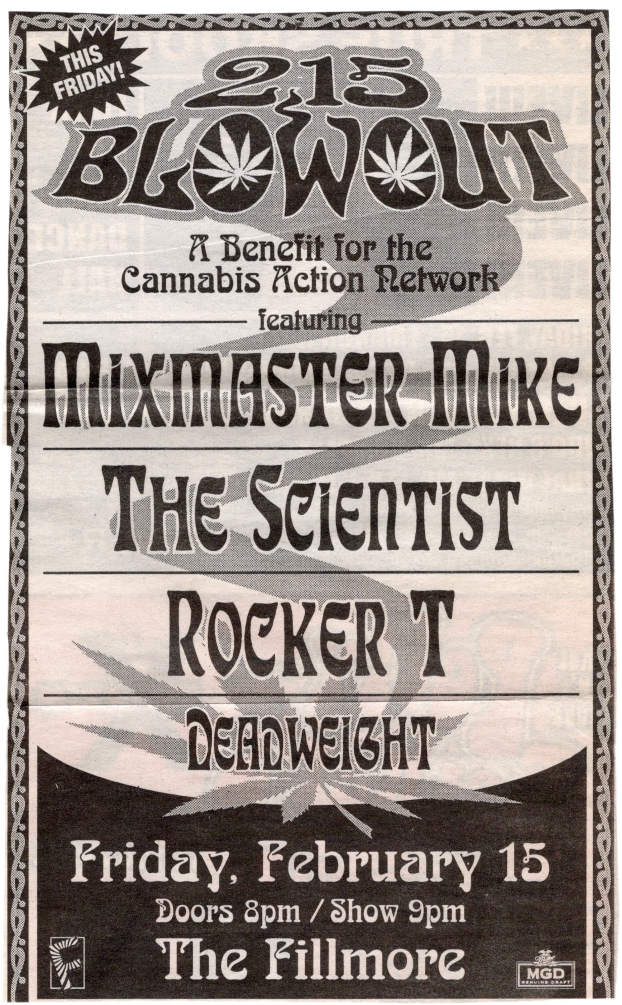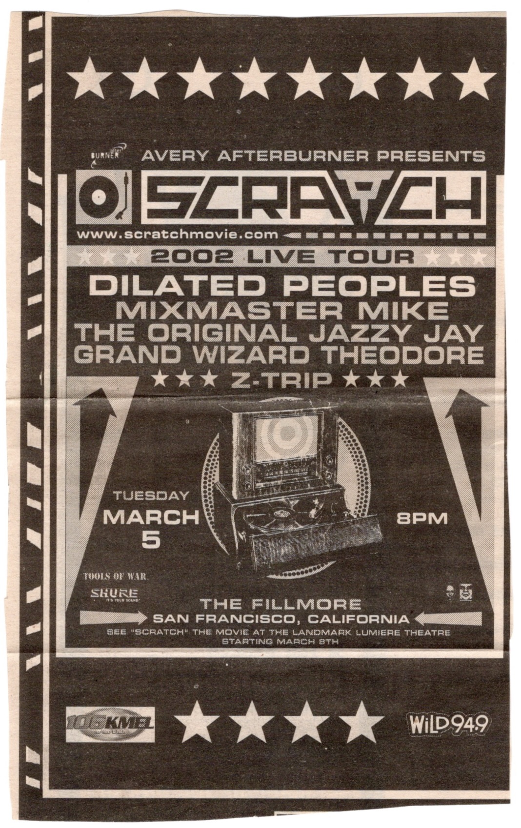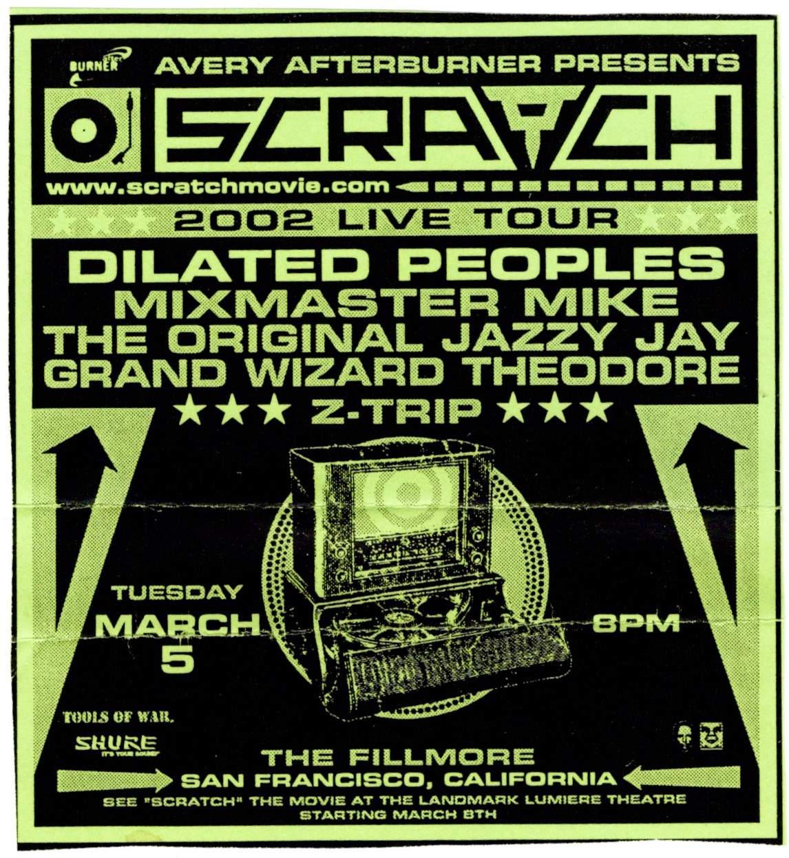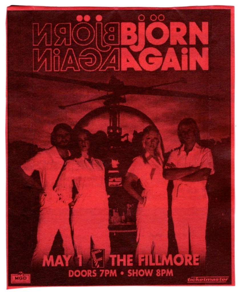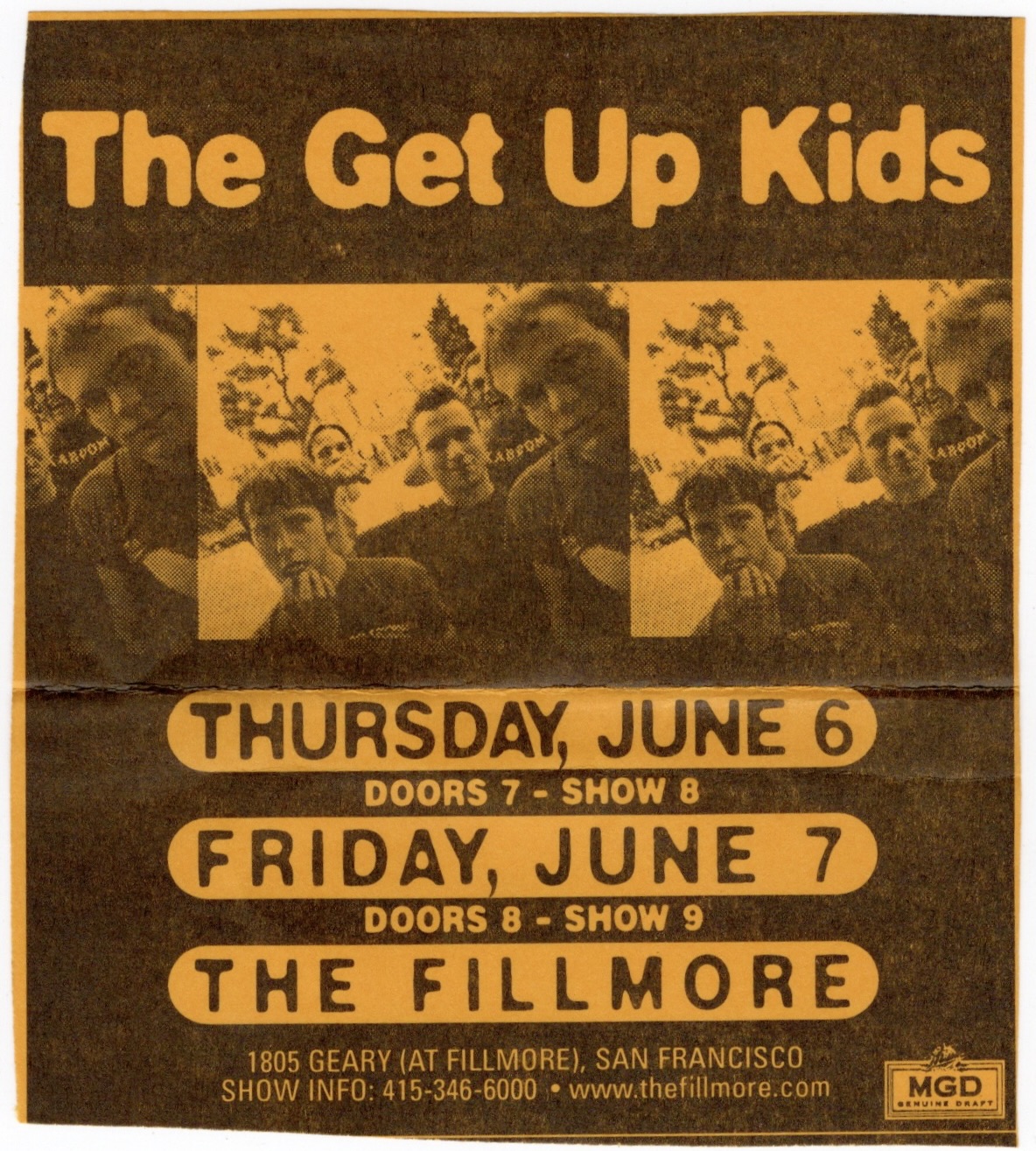 I had copied the setlist on the second night from the sound man on a napkin and for some reason, they had “All I Know” listed as “George”,“Don’t Hate Me” is called “Amy”, and though “Up On The Roof” was on the list, they didn’t play it. The cheers during the encores were loud, especially on the second night where the crowd chanted, “Get Up Kids! Get Up Kids! Get Up Kids!” Matt praised the venue one more time, “The fuckin’ Fillmore, man! God damn! No shit. If we had a place in Kansas City that has half as much history as this room does, we would… have something… It wouldn’t be Kansas City.” I’m glad I was able to catch both days and I’m happy to say that they made a rather handsome poster for these shows. The following night, I would see a very different act on that stage indeed, witnessing the east bay hip hop stylings of the Hieroglyphics.