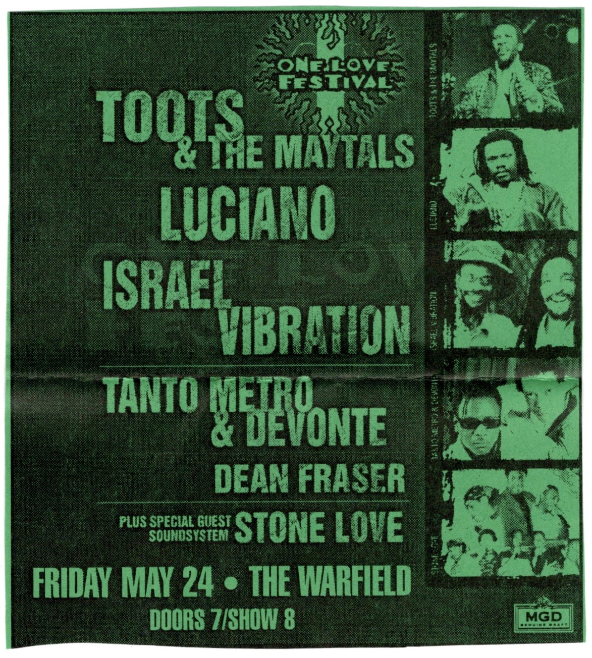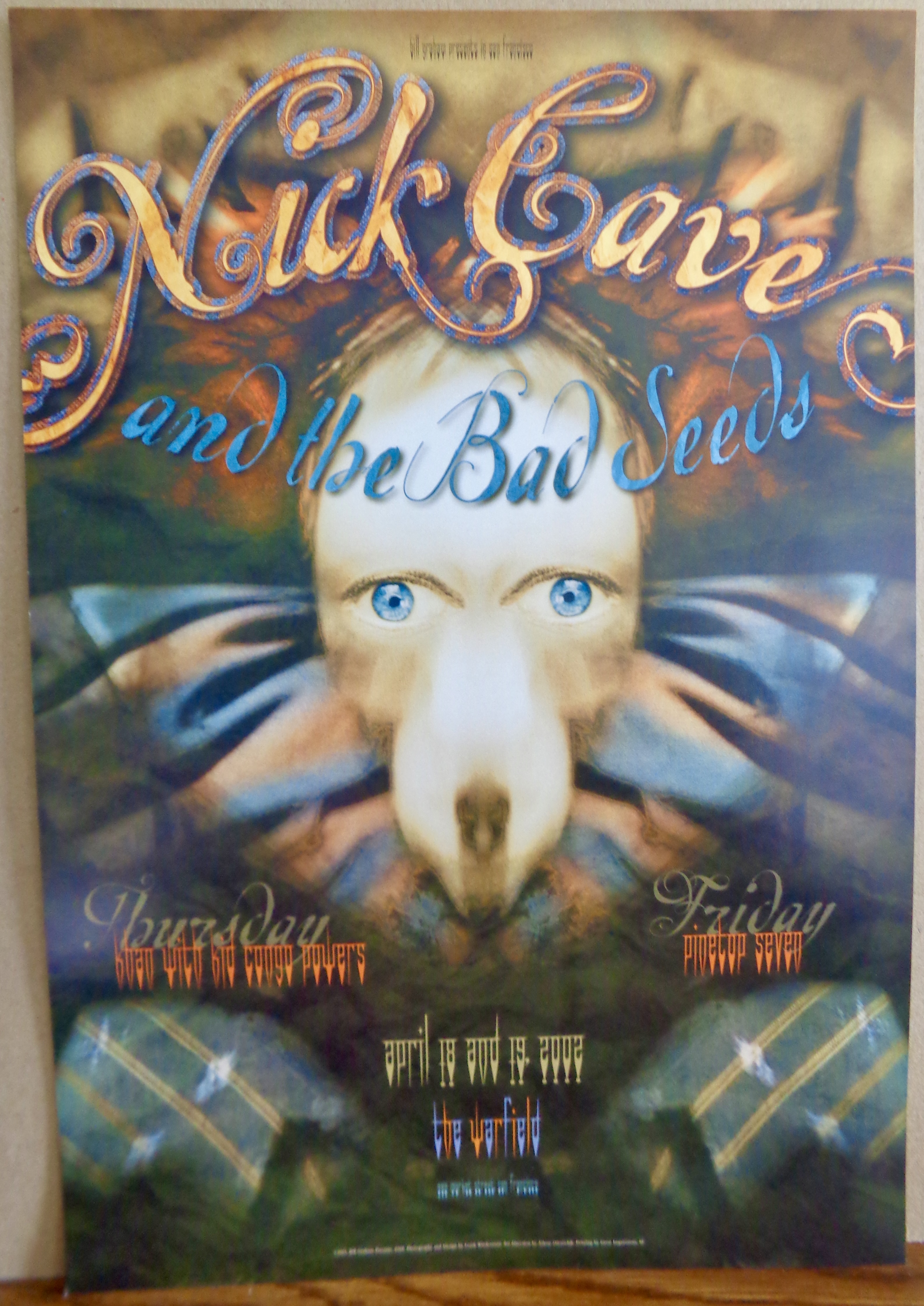I like any band that employs a steel pedal guitar, one of sweetest sounding instruments ever invented, and the guy they had on theirs that night played it masterfully. The crowd was boisterous and clapped along through most songs in their set, especially cheering when one of them would hit a long note to finish songs like “Amazing Grace”, “If I Had A Hammer”, and the aforementioned “Down In The Hole”. Like they did with Fogerty four years before, they paired the lyrics of “Amazing Grace” to the melody of “House Of The Rising Sun”, possibly the most brilliant mash up ever conceived. The Blind Boys were generous allowing the band some solos at the end of the night, including the lead guitarist doing a little riff from the theme song of “The Andy Griffith Show”. Clarence made sure to introduce everybody and joked about George, “He can’t see your smile, ‘cus he’s like me, but he can hear your noise!” They finished the night with a gospel version of “The Last Time” by the Rolling Stones, a poignant one to do for men of their advanced age. There wasn’t a poster that night, but they got one when they performed again at The Fillmore the following year, though I missed that one. Thankfully, I got to see them one more time only eight months later when they did a free in-store performance at Virgin Megastore.