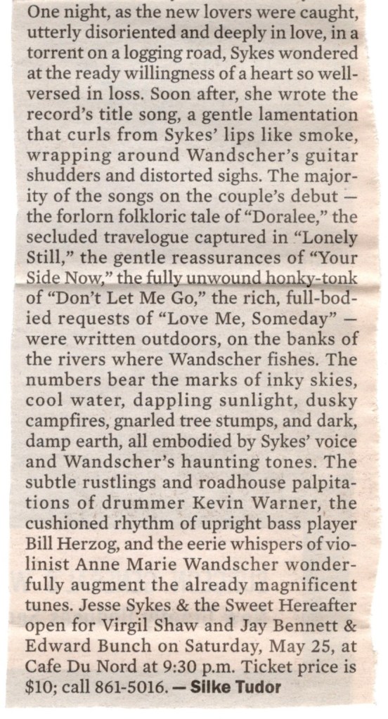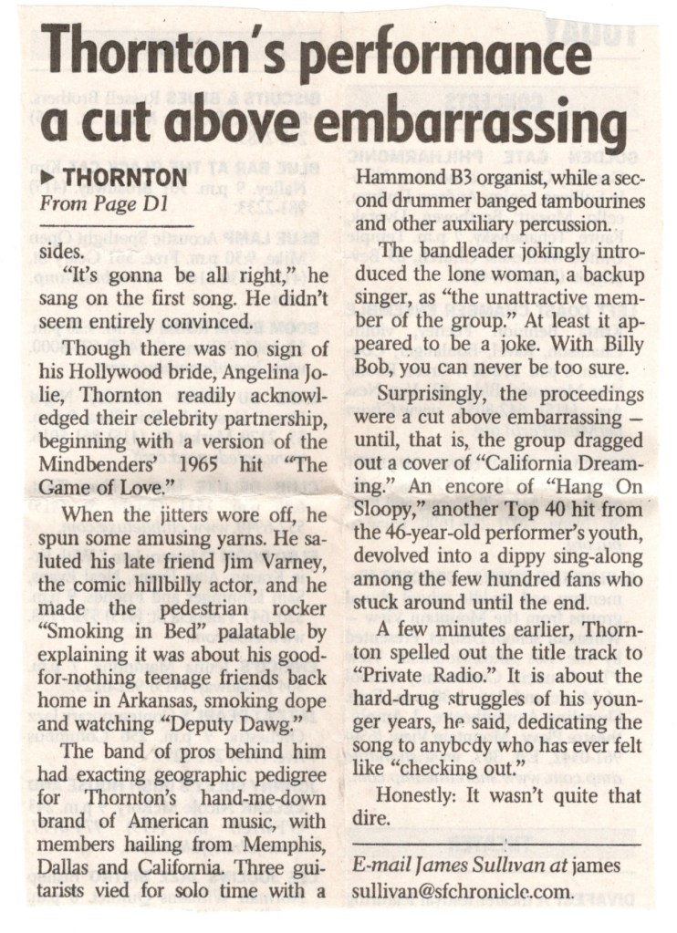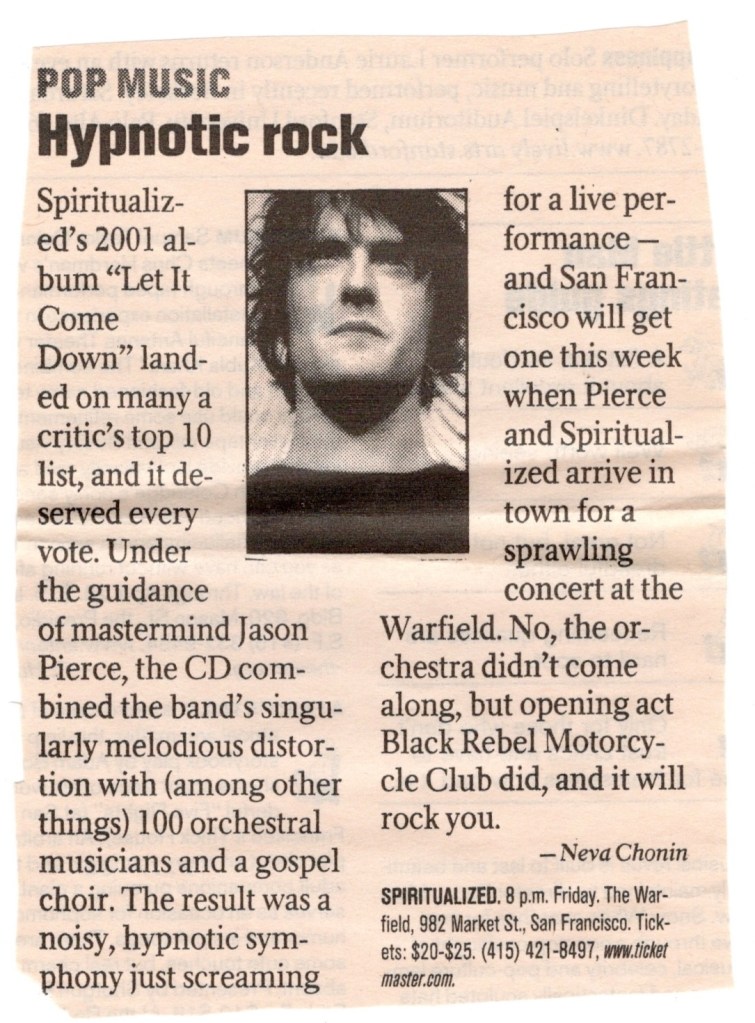 I had just seen Jesse Sykes & The Sweet Hereafter do a free in-store performance at Amoeba Records earlier that afternoon and they were playing at Cafe Du Nord later opening for Virgil Shaw. Beginning the festivities that night at The Fillmore was Julie Plug, an indie rock band from San Francisco fronted by Des (Julie) De Leon and guitarist Terry Nicolas. They had been around almost a decade and had just put out their second album, “Whatever You Wonder” earlier that year. I thought they sounded a little like The Sundays, but after a few songs, the rest of the audience and I kind of lost patience with them. Their sound was rather monotonous and to make matters worse, I couldn’t make heads nor tails of their lyrics, so after a while listening to their set again, I sort of gave up trying to figure out the song titles. They never made another album after that one and this would thankfully be the only time I’d see them play.