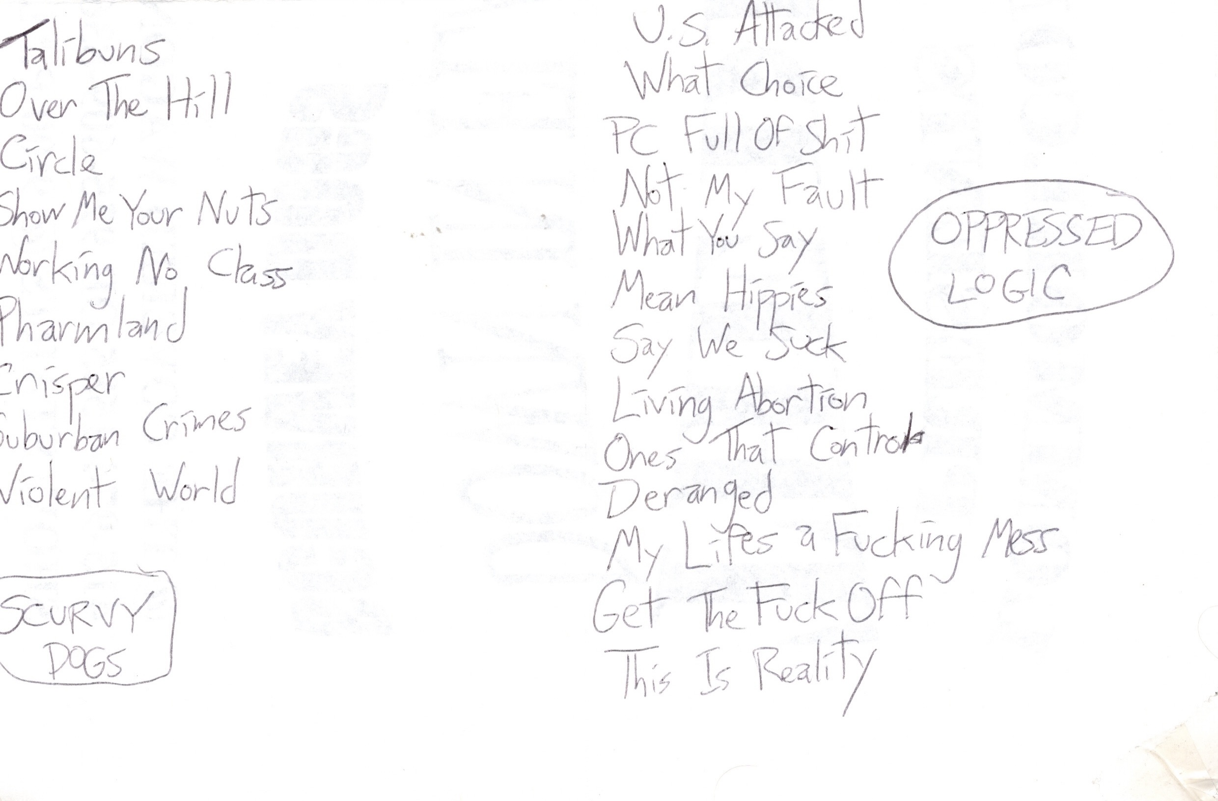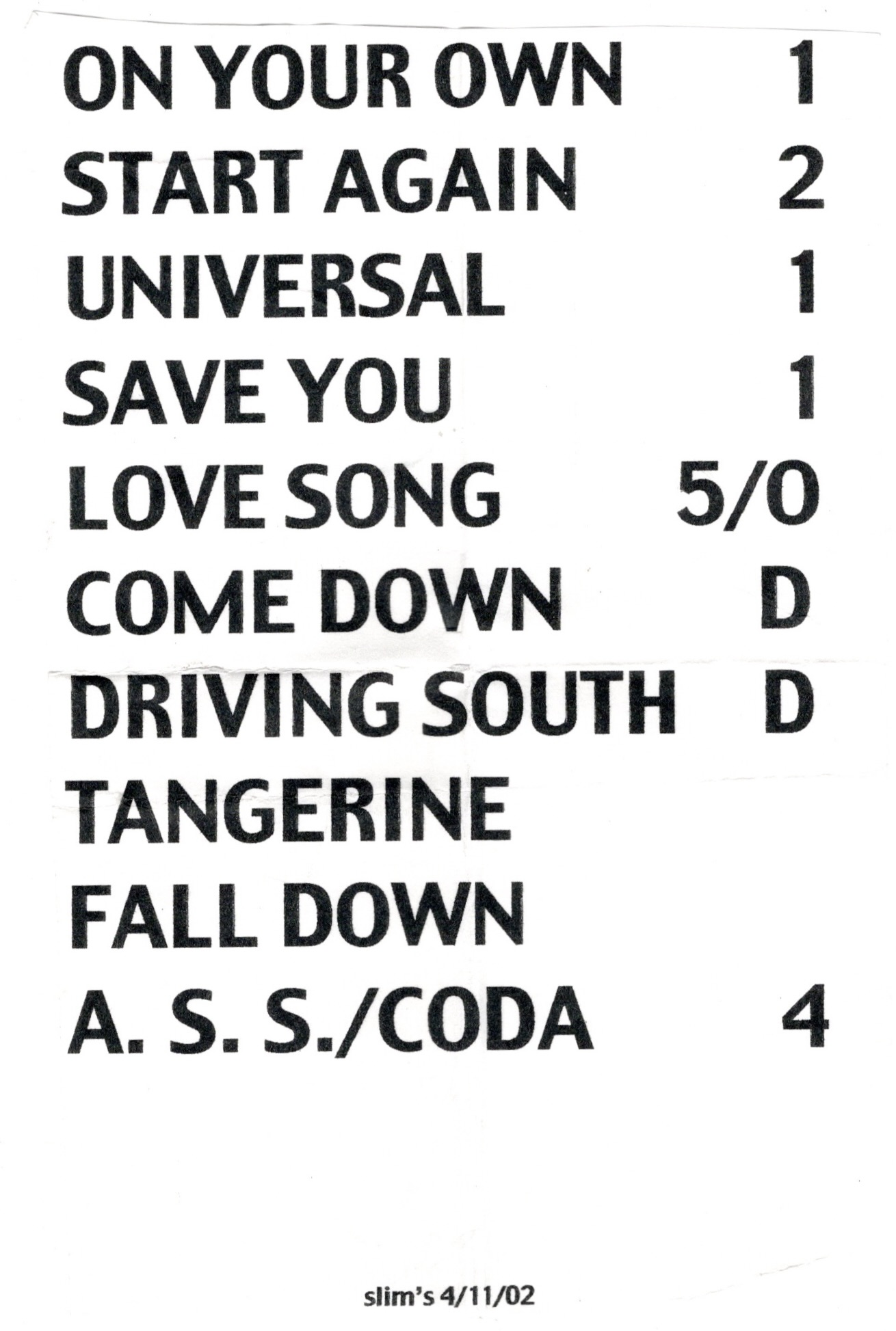(UNWRITTEN LAW) : Up All Night, Teenage Suicide, Sorry, Cailin, (unknown), Babylon, Seein’ Red, Lonesome, Rescue Me, Underground, Harmonic