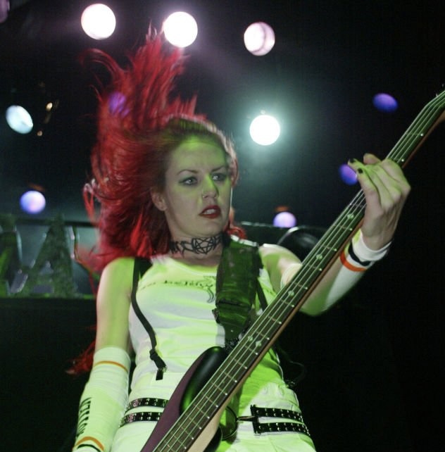 It went on and Shirley denied the advances of one of her more lusty fans in the pit, “No kisses, but you have my admiration and that should be better than a kiss. Cus’ you can kiss everybody, you don’t necessarily admire them”. Then somebody handed her a bouquet of flowers and she smiled, “Thank you so much! These are beautiful”. Butch had taken a break or something and she wondered, “Do we have a drummer?”, while the band waited for him to return. Daniel, their bass player, filled the silence with some riffs, but she playfully rebuked him, “I will smash you bass over your head if you don’t stop playing so loud… I was trying to say before I was rudely interrupted by Daniel playing the silly bass line on his bass was that we thank all our fans for coming out for us”. Butch eventually returned, maybe suffering from one of the previously mentioned maladies and they got things rolling again. Before they played “When I Grow Up”, Shirley gave a shout out, “Alright, Michelle & Nicole, two lovely ladies I met yesterday, this song’s for you. This is for when you start your own rock band. I’ll be coming to your concert!”