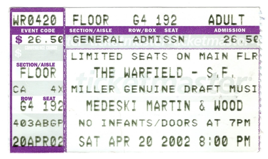 I knew jack shit about Jack White and his sister/wife Meg before I saw them that night, apart from that everyone else on Earth seemed to be talking about them. This bi-colored dynamic duo from the Detroit, Michigan area were the talk of the town ever since their debut Fillmore show in 2001, but they were back and were already outgrowing venues of that size, compelling the folks at The Fillmore to add a second show the day after this one. I originally mislabeled my tapes as being from the second show and I admit that upon discovering a better recording of The White Stripes’ second show on YouTube, I listened to that one, burning it to disc and taking my usual amount of notes along the way. Thankfully, upon discovering that I only had the poster from the first show in my archives, I re-listened to my own tapes and discovered that it was indeed the first of the two shows that I had attended. Considering the amount of shows I was ushering around that time, this slip up is understandable and I’m glad I caught it in time.