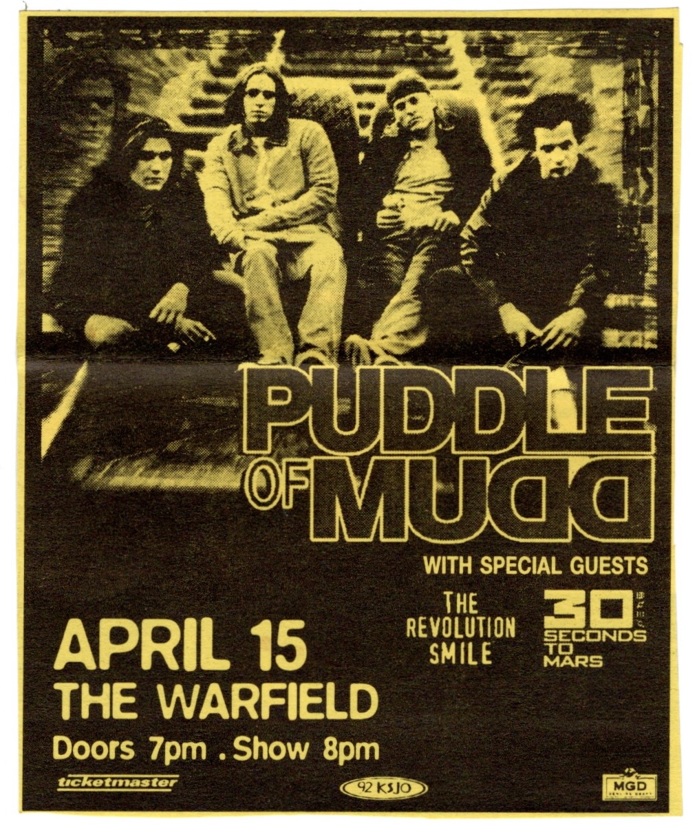 OK, OK, OK… Before y’all start cracking jokes, I want to point out a few things first. Back then, I didn’t know Nickelback from Adam. They were still relatively new and I was ushering practically every show at The Warfield and The Fillmore that I was available to do. Secondly, I hadn’t seen Jerry Cantrell since I saw him with Alice In Chains at Lollapalooza in 1993, nearly a decade before this show. It was doubly important to me since Layne Staley, the singer of Alice In Chains had just died of a speedball overdose just 53 days prior at the all too young age of 34. That being said, it is no secret that for the many years since their heyday when I saw them, Nickelback had become the brunt of derision to the point of laughingstock. Indeed, Rolling Stone magazine actually ranked them the second worst band of the 90’s, just behind Creed. Of course, that is a matter of opinion, but one would be hard put to find somebody who would admit to liking Nickelback today, at least one that would admit it publicly. What I did surmise early was they were another one, like Creed, Three Doors Down, Staind, just to name a few, of that genre around that time I like to call Republican Rock, like a more tepid version of the Nu Metal genre whose popularity was beginning to wane.
