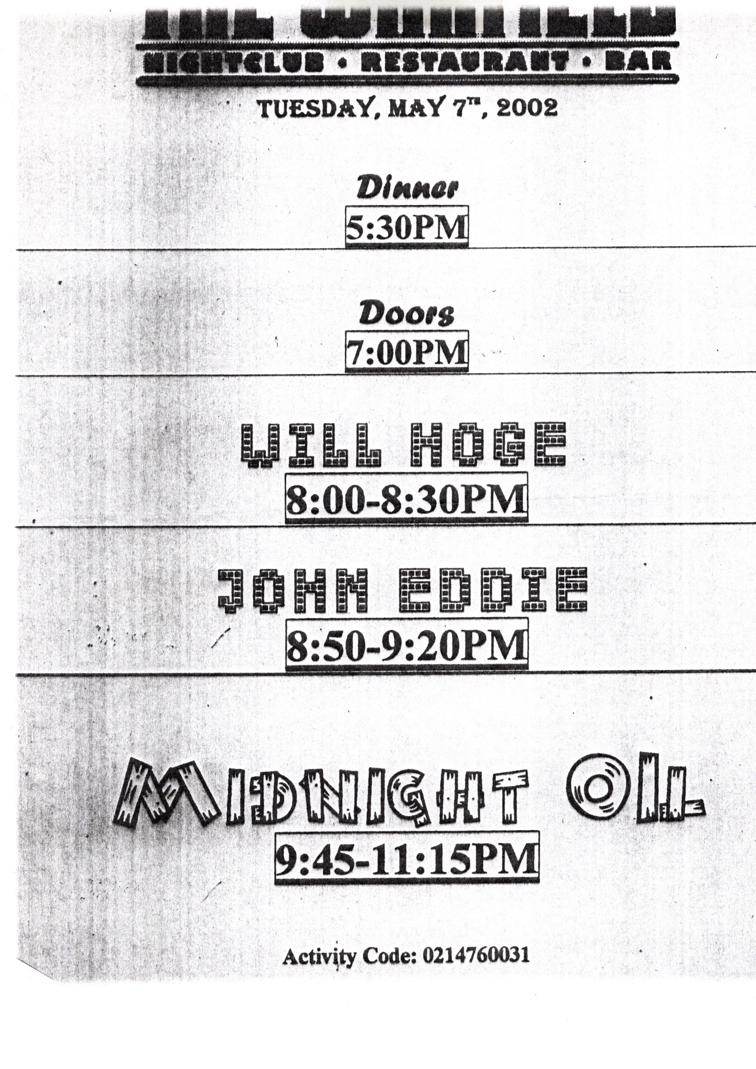Though frontman Deryck Whibley was just a couple months shy of his 22nd birthday, he and his bandmates literally looked like children. I was remarking to one of the veteran bartenders named David whose left bar aisle position I was assigned to as usual that night that the name Sum 41 was actually the collective sum of the band member’s ages. Truth be told, they chose that name because the band formed on the 41st day of their summer vacation. I didn’t know anything about these Canadian kids before that night, though I had heard that they were no fans of George W. Bush and would go on to be vocal in their criticism of the invasion of Iraq. In a related story, in Afghanistan, John Walker Lindh, that dipshit from Marin county who joined the Taliban, had just been captured by U.S. forces and would soon be brought back to America to be put on trial and imprisoned.