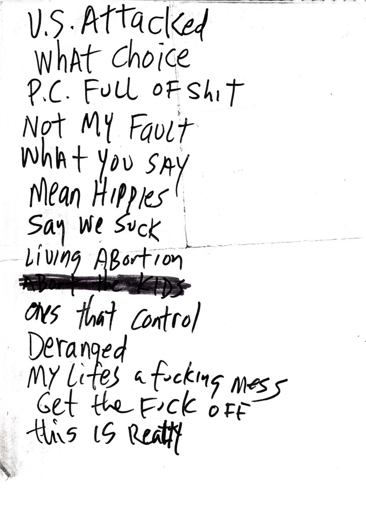 But after watching a glorious sunset on said mushrooms and taking the time one does high on such things for deep introspection, like I said, I felt guilty about it, even if they deserved it. But back to the show at hand. Thank you for your patience. I’m happy to report that just before I started writing, I discovered a quality bootleg copy of Nickelback’s set from that night on YouTube and will listen to it while burning it to disc later. Perhaps then, I will have a more accurate appraisal of how Nickelback did that show. Incidentally, as further evidence of my inebriation, the notes I traditionally take while listening to recordings, well this one’s legibility becomes increasingly and hilariously sloppier as the notes went on to the point where the last few notes are practically unreadable. Sorry, I continue to digress.