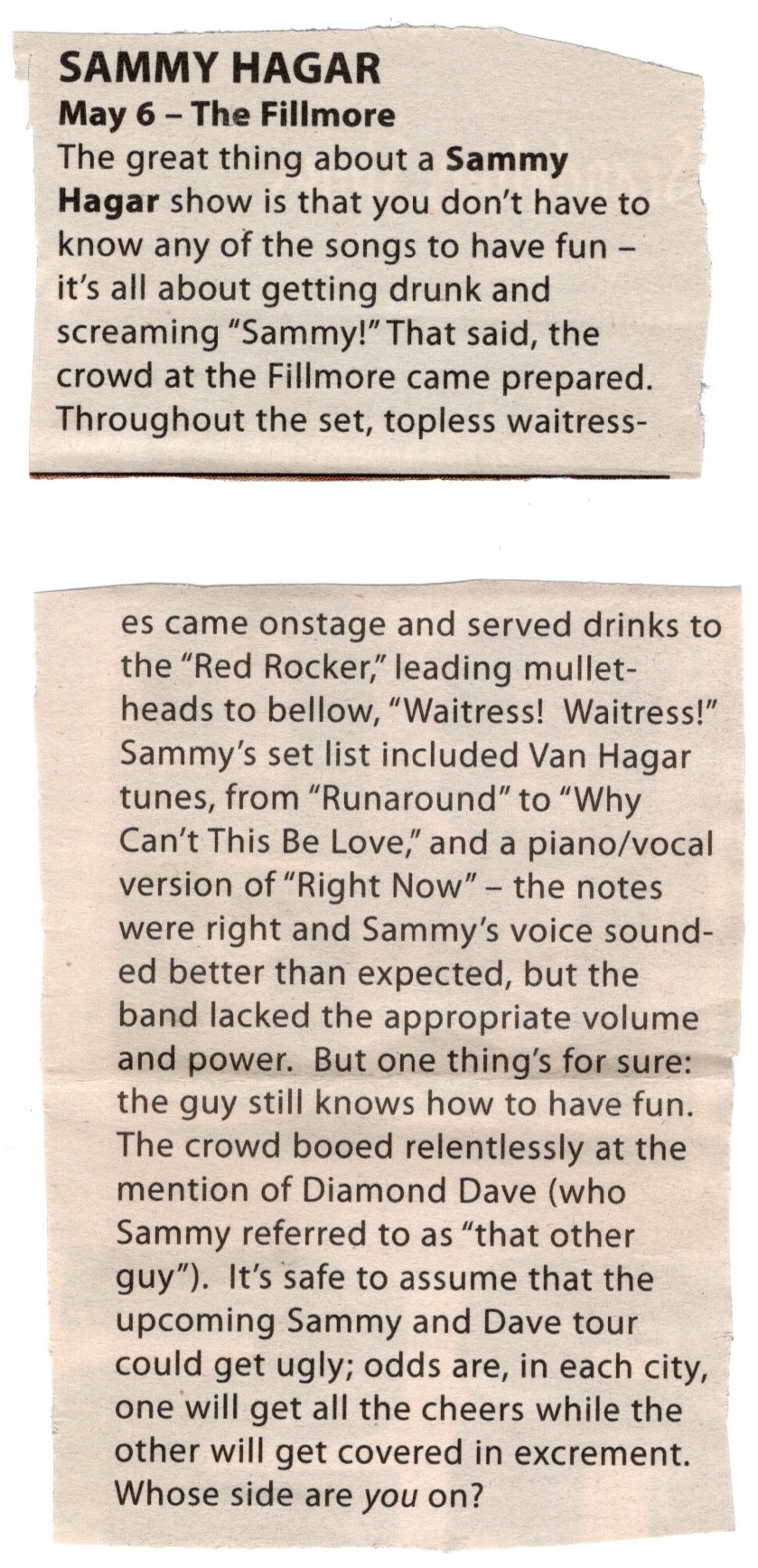 After “Turbo Lover”, Ripper joked that “only San Francisco will be slamming” to that song and then they finished their set with “Painkiller”. My batteries quickly ran out during that one, which made me miss “Electric Eye” at the beginning of their first encore, but I replaced them in time to get everything after “United”, an old song they hadn’t played in a long time. They came back out to do the aforementioned “Hell Bent For Leather” for their second encore and left their fans chanting “Priest! Priest! Priest!” It goes without saying that it was an excruciatingly loud concert which left all those unwise enough to not wear earplugs with a painful case of tinnitus, though consequently the tapes came out great. It was a pity that there wasn’t a poster that night, but I’d only have to wait seven short months before they’d return to town to play The Fillmore.
