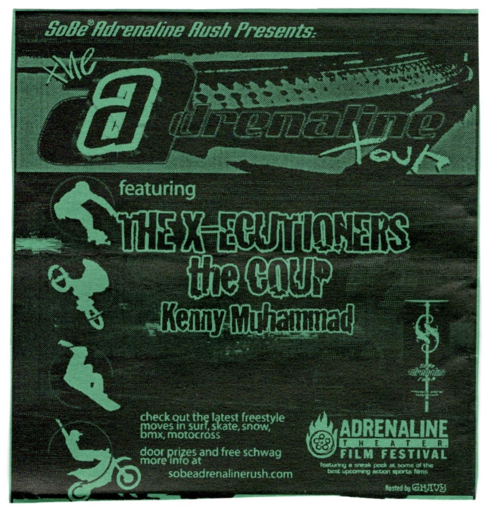 Needless to say, Goapele was a hard act to follow and the Colt 45 crew tried their best, but their tough guy bravado kind of fell flat after such an inspiring set. Incidentally, boxer Lennox Lewis had just defeated Mike Tyson that night after they had a rather tense scuffle before the match, yet another example how machismo won’t help you prevail in the end against sheer talent. Still, the Colt 45 crew were able to get the crowd a little motivated goading them to chant “Schoolyard!” briefly as well as that “Oh-wee-Oh-Ohhhhh!” bit from the Wicked Witch’s soldiers in “The Wizard Of Oz”. But they were only on for a few songs and their DJ took over again until the Hiero guys were ready and got things rolling for real.