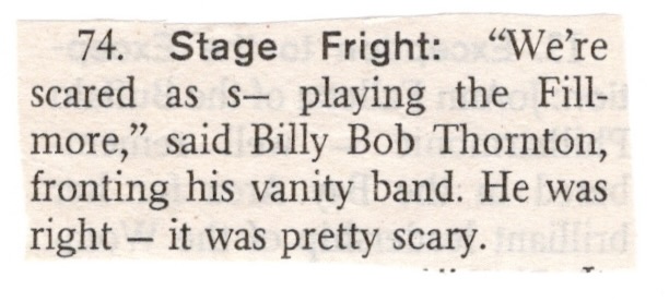 Opening that night was Brian Henneman the frontman of The Bottle Rockets and former guitar tech for Uncle Tupelo, playing solo acoustic. His voice actually reminded me a little of Jack Black’s though obviously not as silly. Brian mentioned during his set that this was the second time he had been on that stage, once before opening for Kenny Wayne Shepherd there back in 1996, though I missed that one too. Unfortunately, in order to get all of Jay’s set, I had to tape over a few songs of Brian’s, though I got more than half of it intact. Like Jay, Brian also did an homage to a recently fallen hippie, Doug Sahm of the Sir Douglas Quintet, playing his song “Stoned Faces Don’t Lie”. He joked, “I hope I have the lyrics in the right order. If you feel like singing along, that’ll be really good… He was like my favorite musician in the whole world and The Fillmore was one of the reasons he wrote this song right here”. Coming originally from Texas, Doug and his band had joined the late 60’s, psychedelic rock scene in San Francisco joining fellow Texan transplants as Janis Joplin and Roky Erickson of the 13th Floor Elevators and there was at least one Sir Douglas Quintet poster in the poster room to prove it.